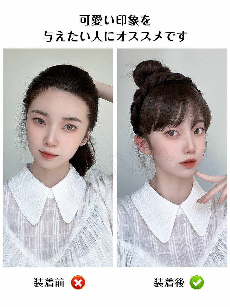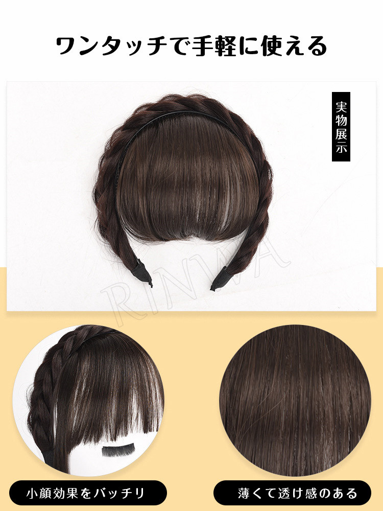 前髪付きカチューシャ ウィッグ 可愛い