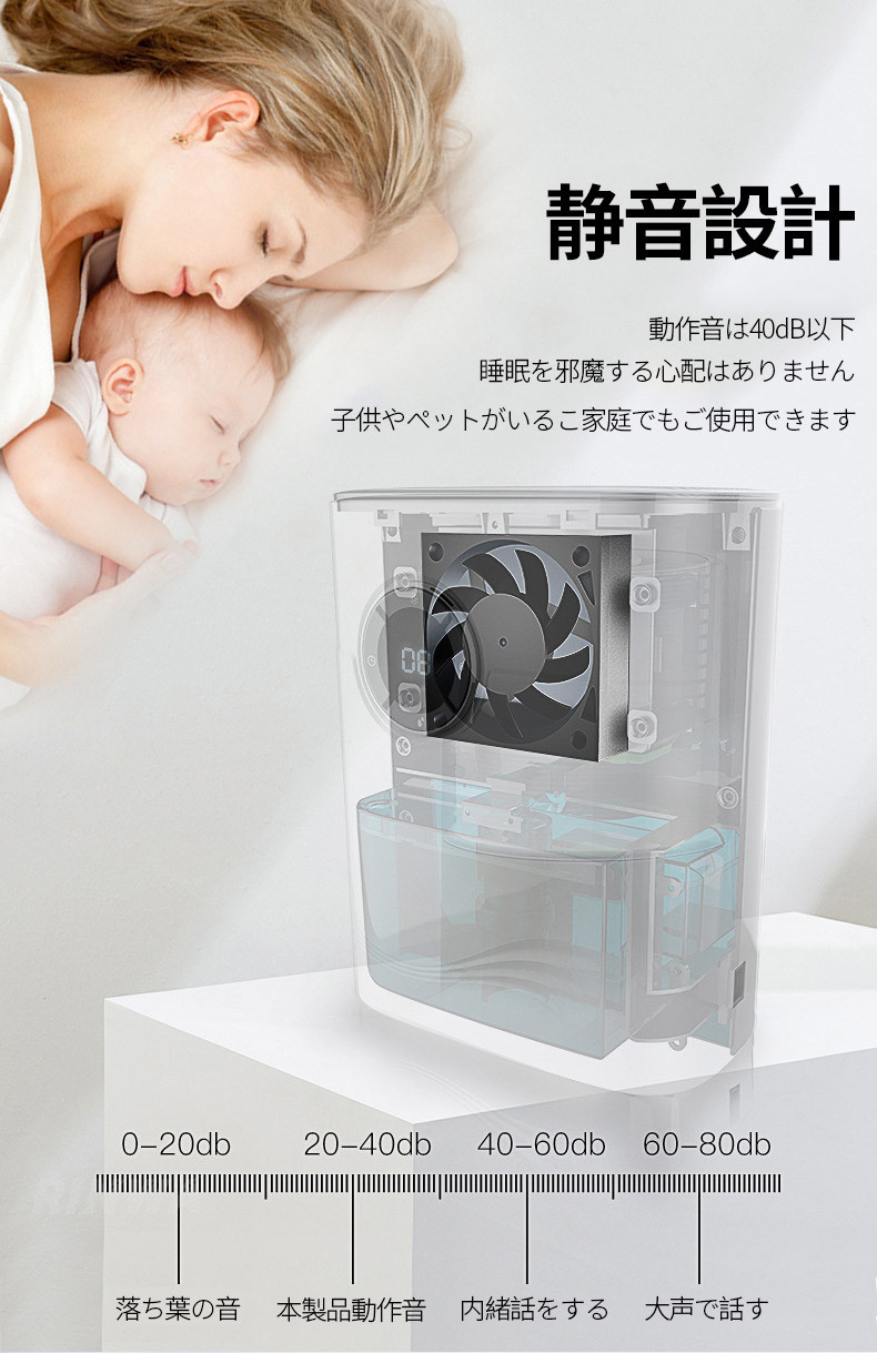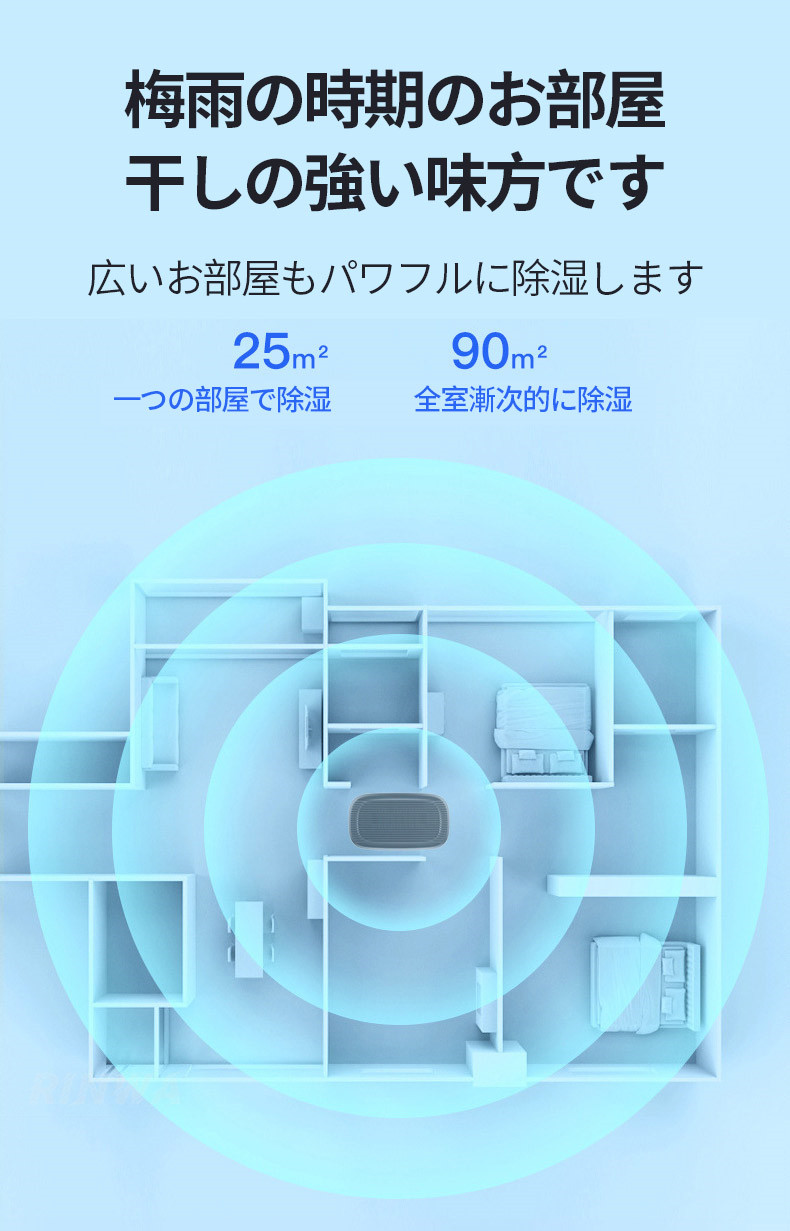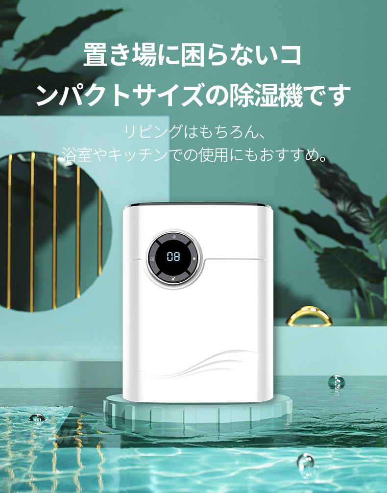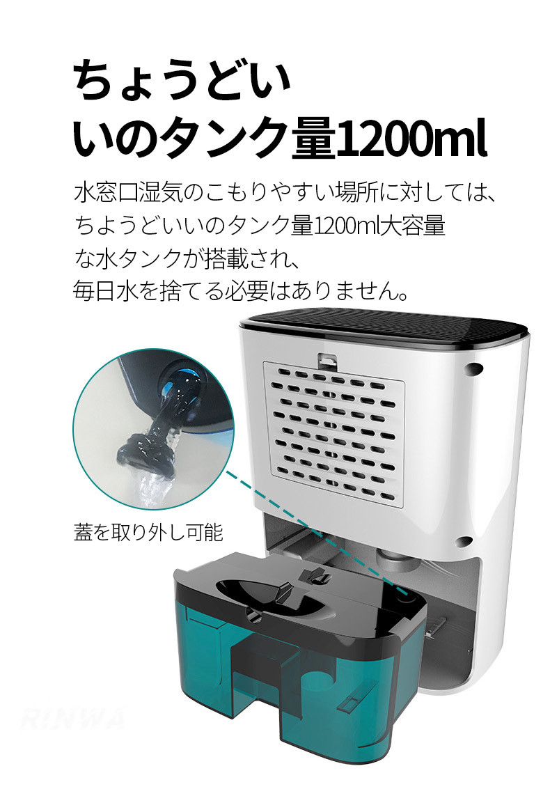 除湿能力:目安として室温30度・湿度80%で200ml-300ml/日