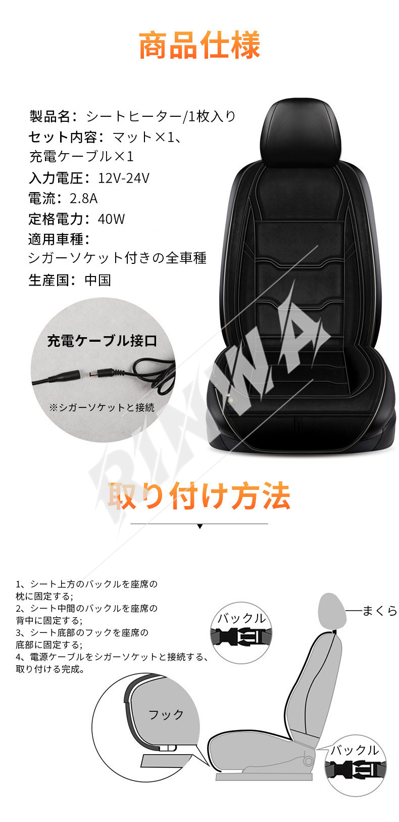 12V 24V通用 ホットカーシート