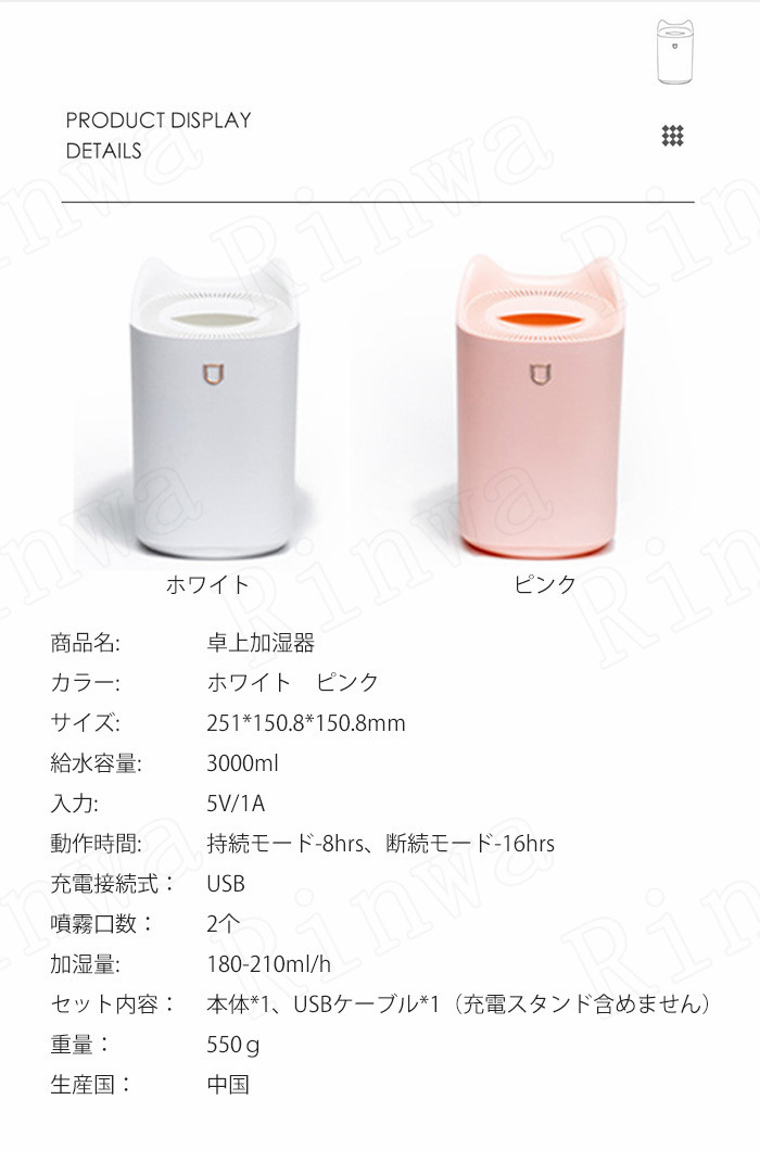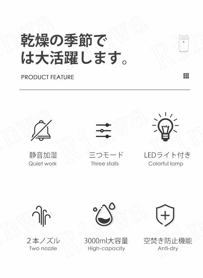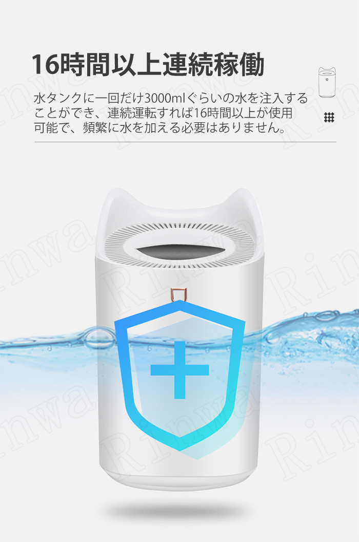 加湿器 3L 大容量 上部給水 超音波