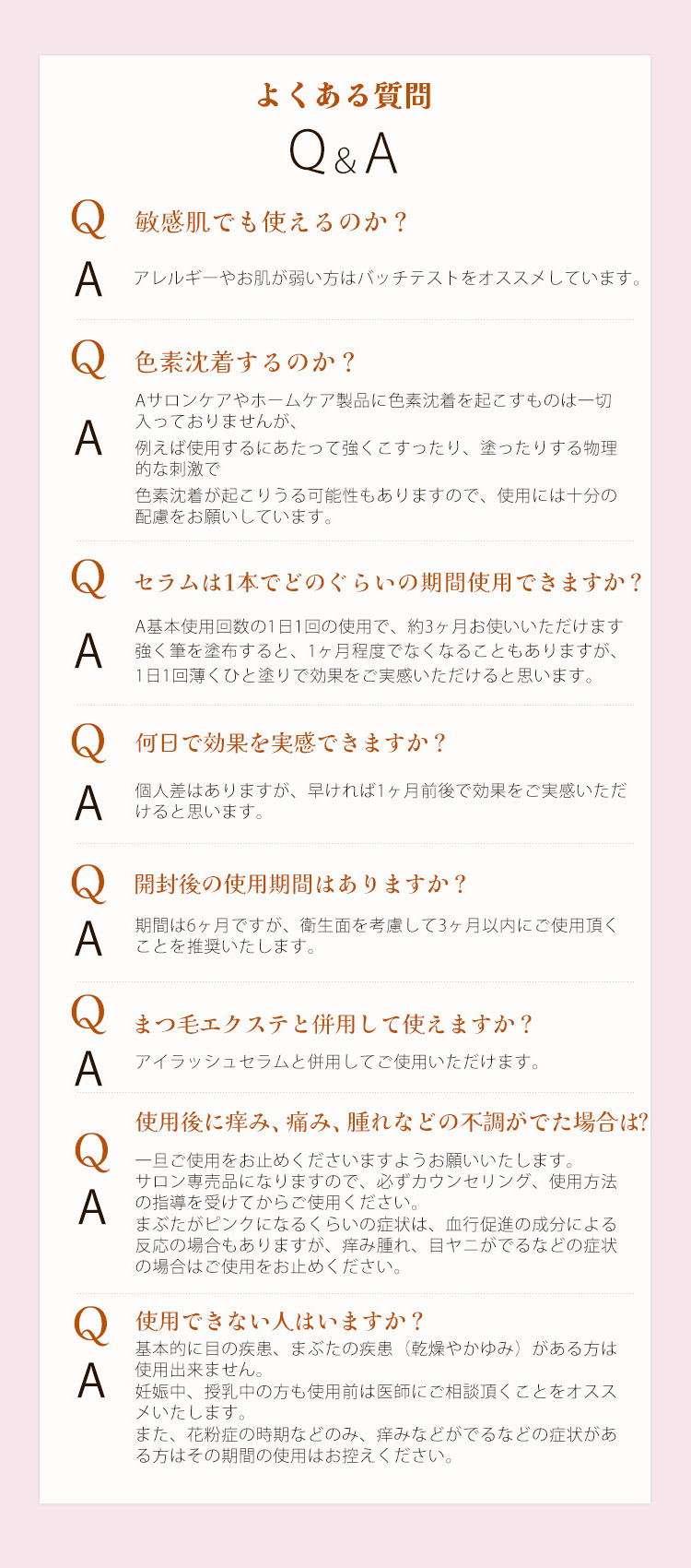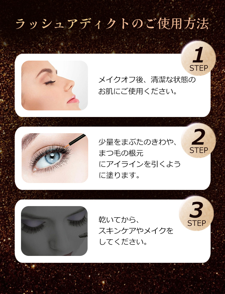 まつ毛やまゆ毛以外へのご使用は避けてください。