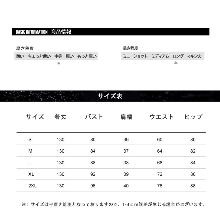 着丈130cm バスト88cm 肩幅38cm ウエスト68cm ヒップ84cm