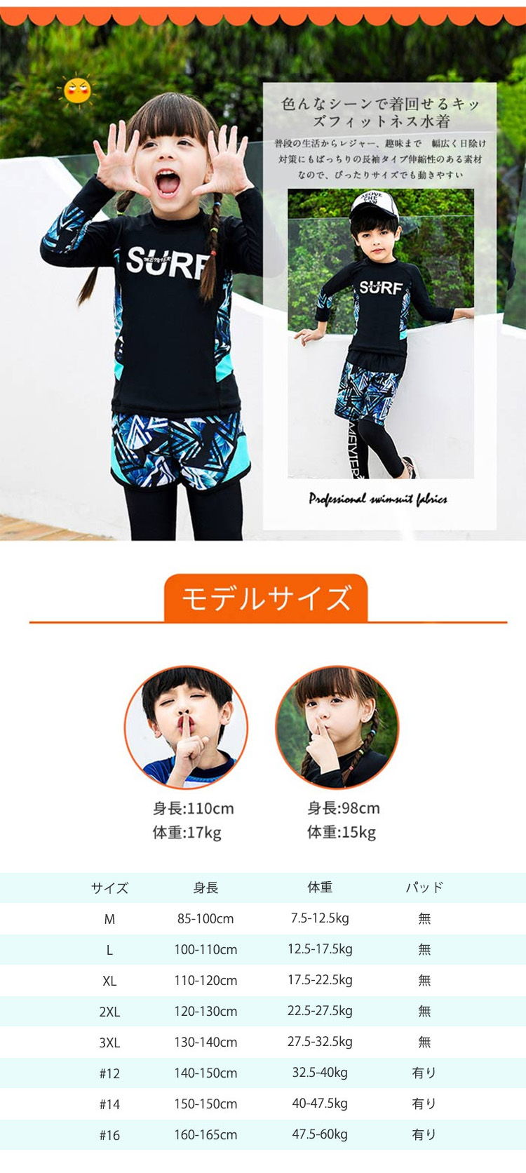 サイズ: M/85-100cm L/100-110cm XL/110-120cm 2XL/120-130cm 3XL/130-140cm 12#/140-150cm 14#/150-160cm 16#/160-165cm