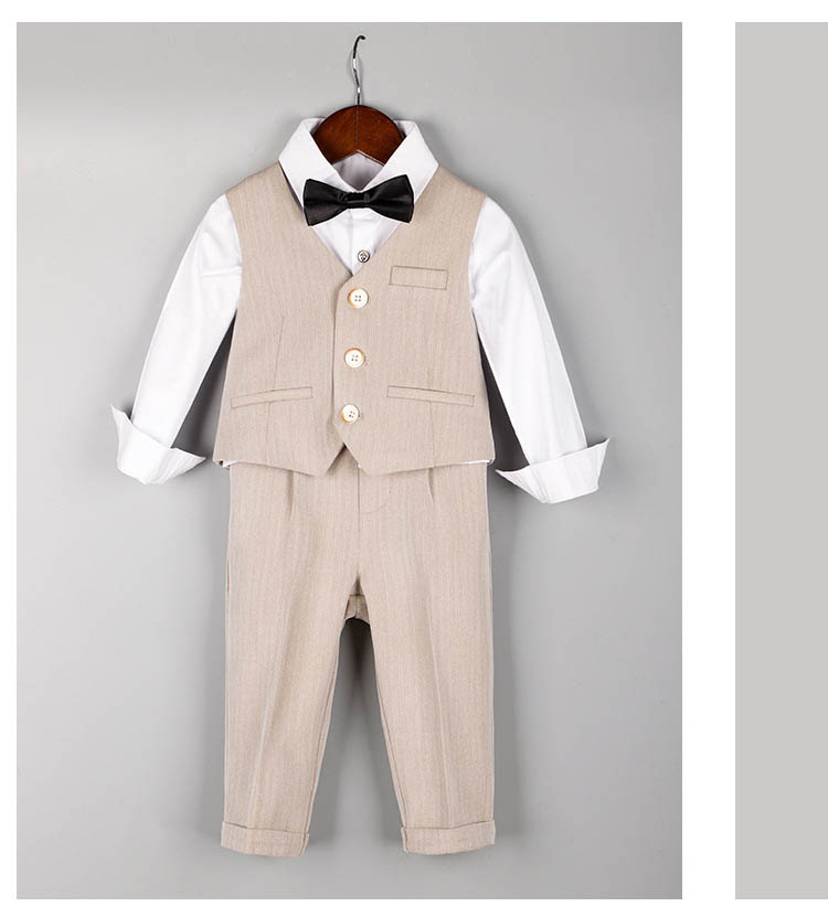 130cm:着丈(ジャケット)48cm、胸まわり(ジャケット)78cm、肩幅(ジャケット)30cm、着丈(ベスト)42cm、胸まわり(ベスト)76cm、肩幅(ベスト)26cm、ズボン総丈66cm、ズボンのウェスト56cm
