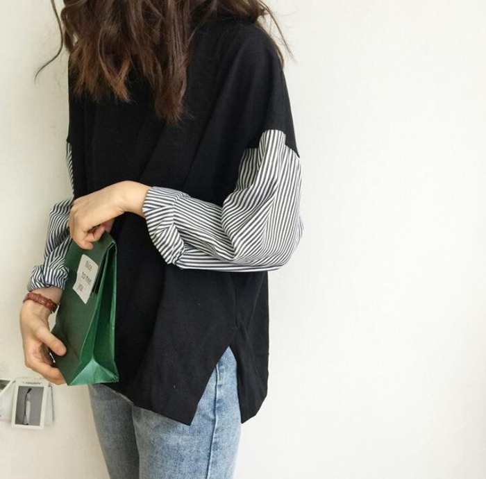 シアースリーブ ドッキングシャツ ボウタイシャツブラウス