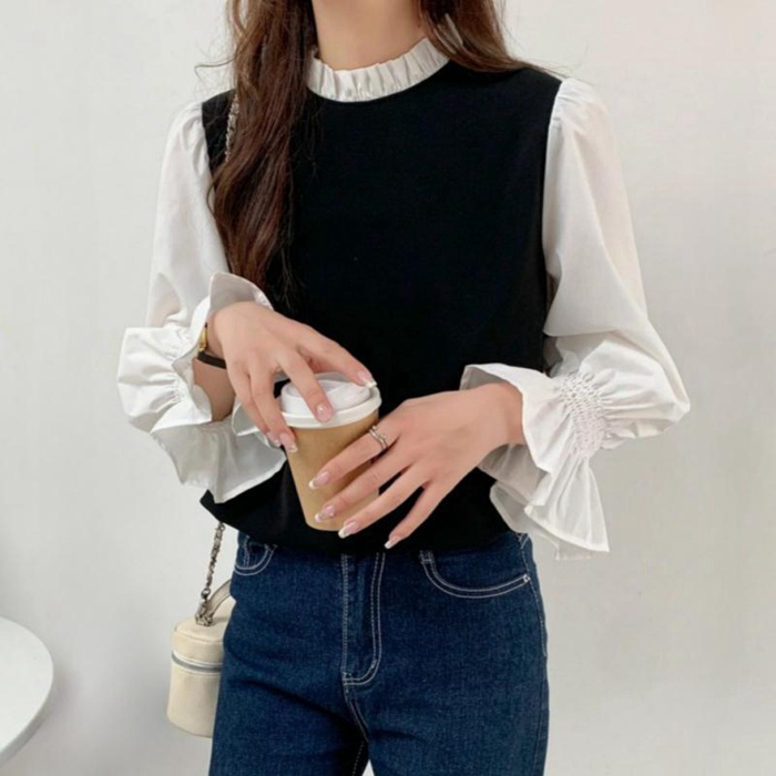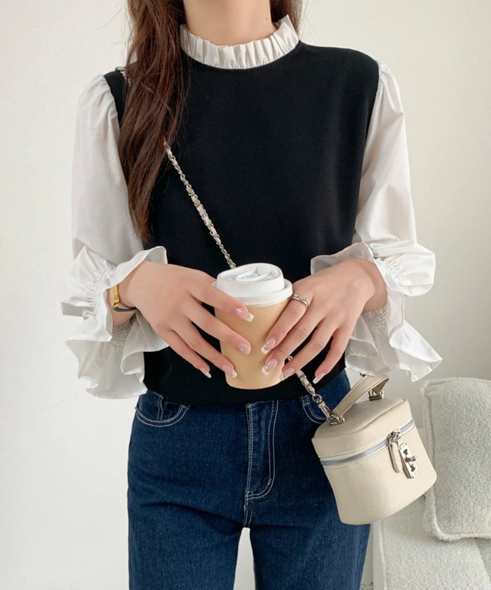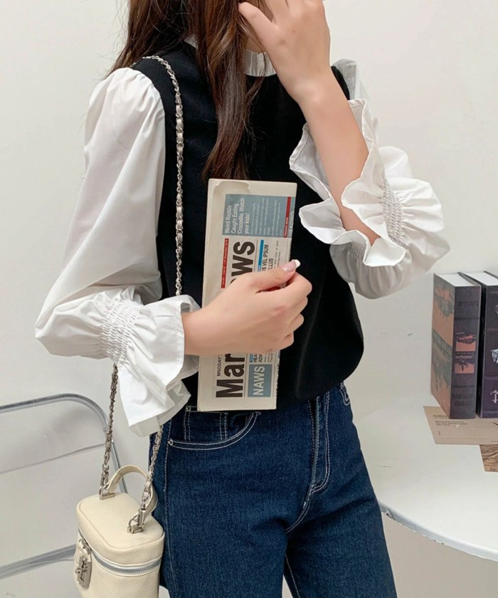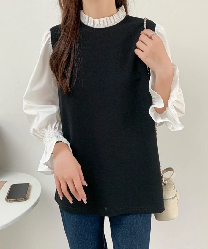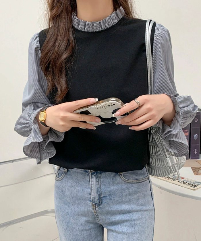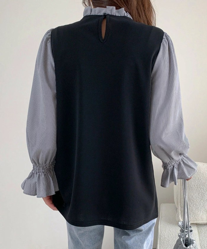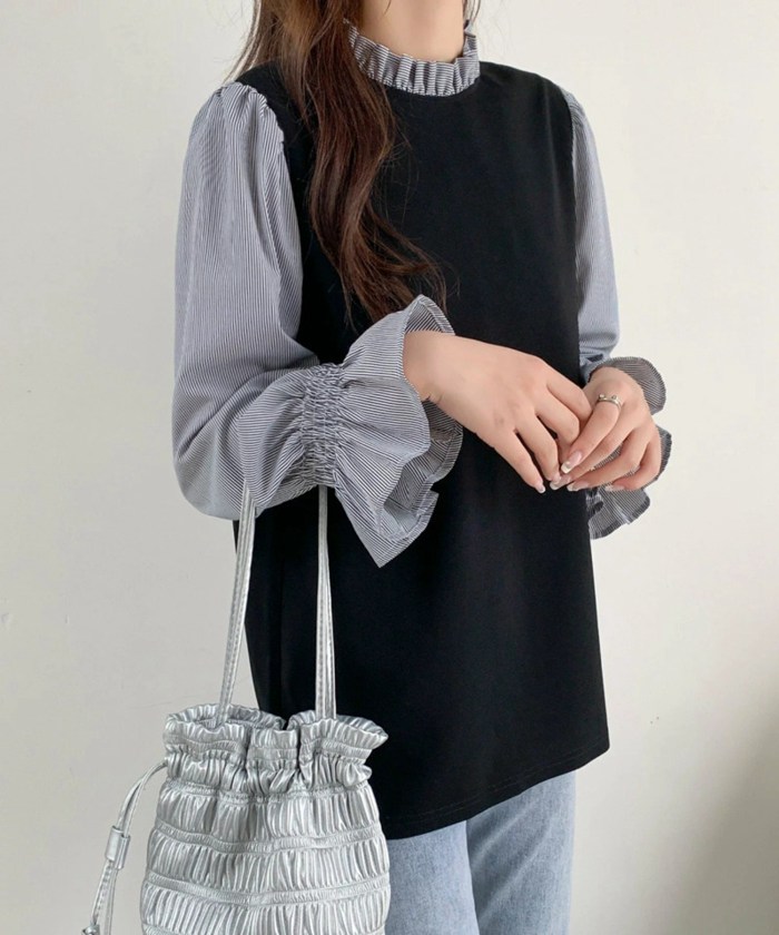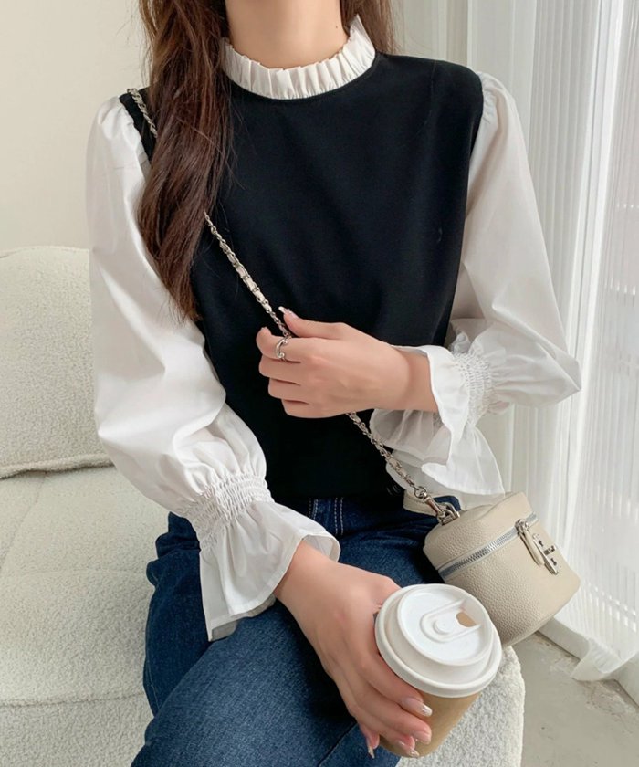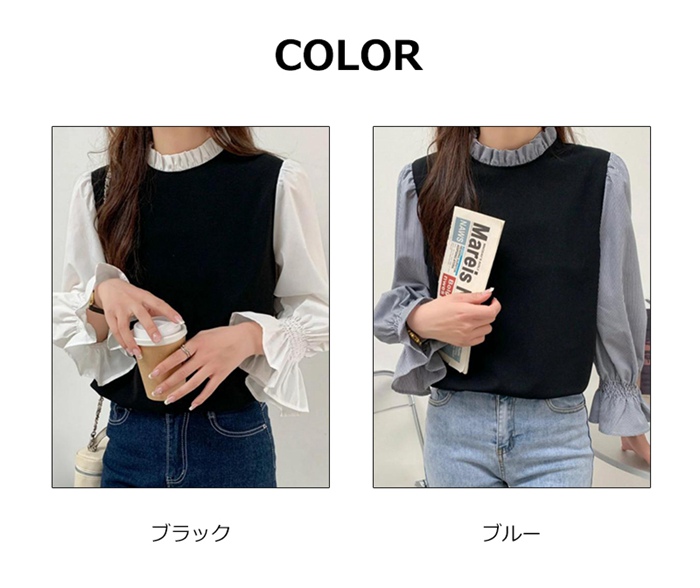 シアースリーブ ドッキングシャツ ボウタイシャツブラウス