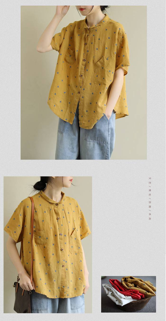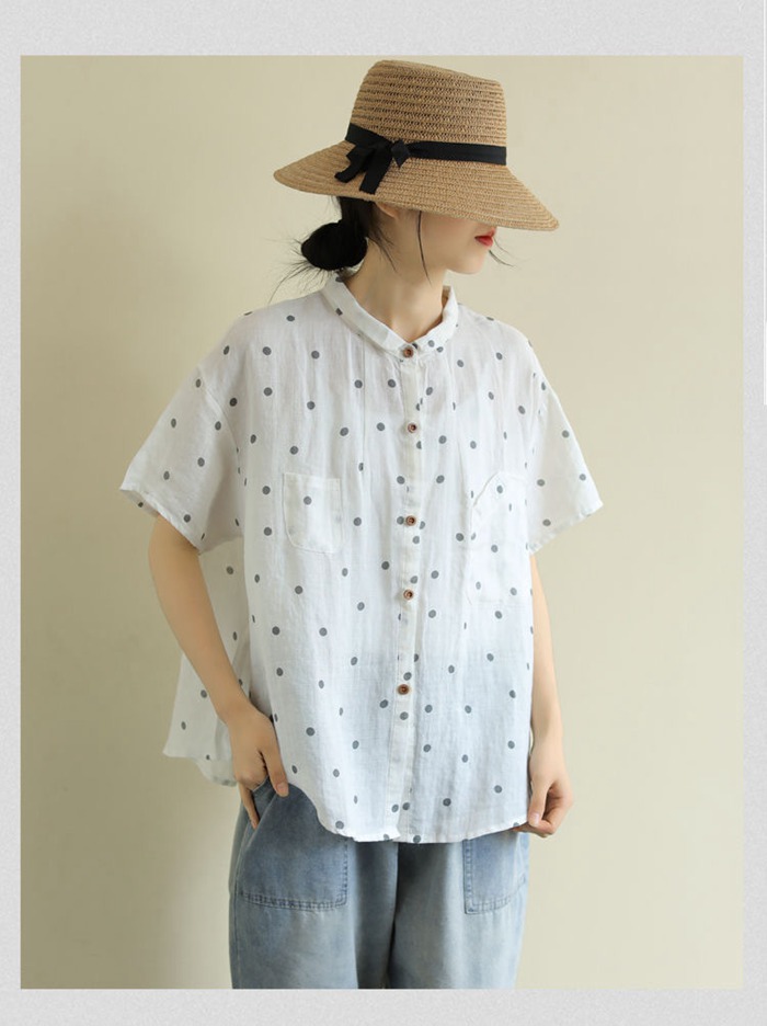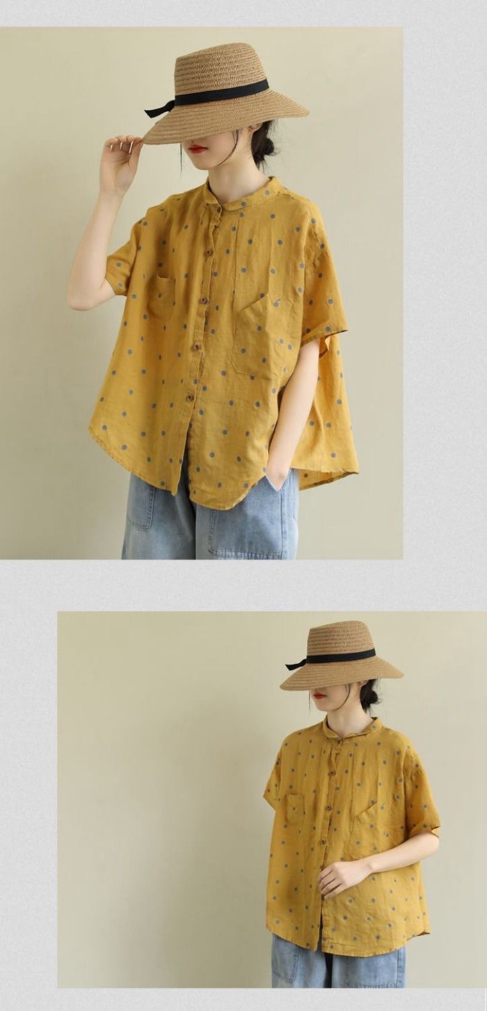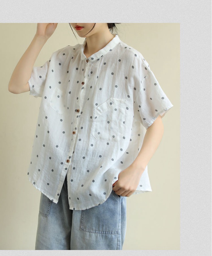 綿麻風 シャツ ブラウス 半袖 シャツ