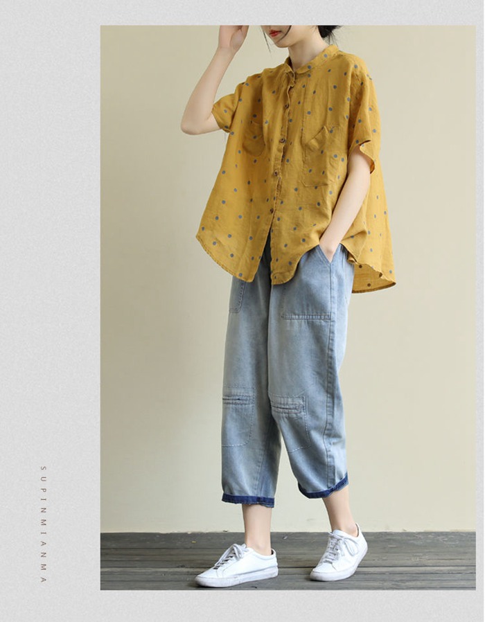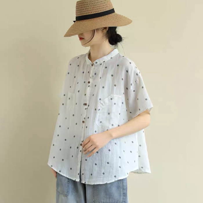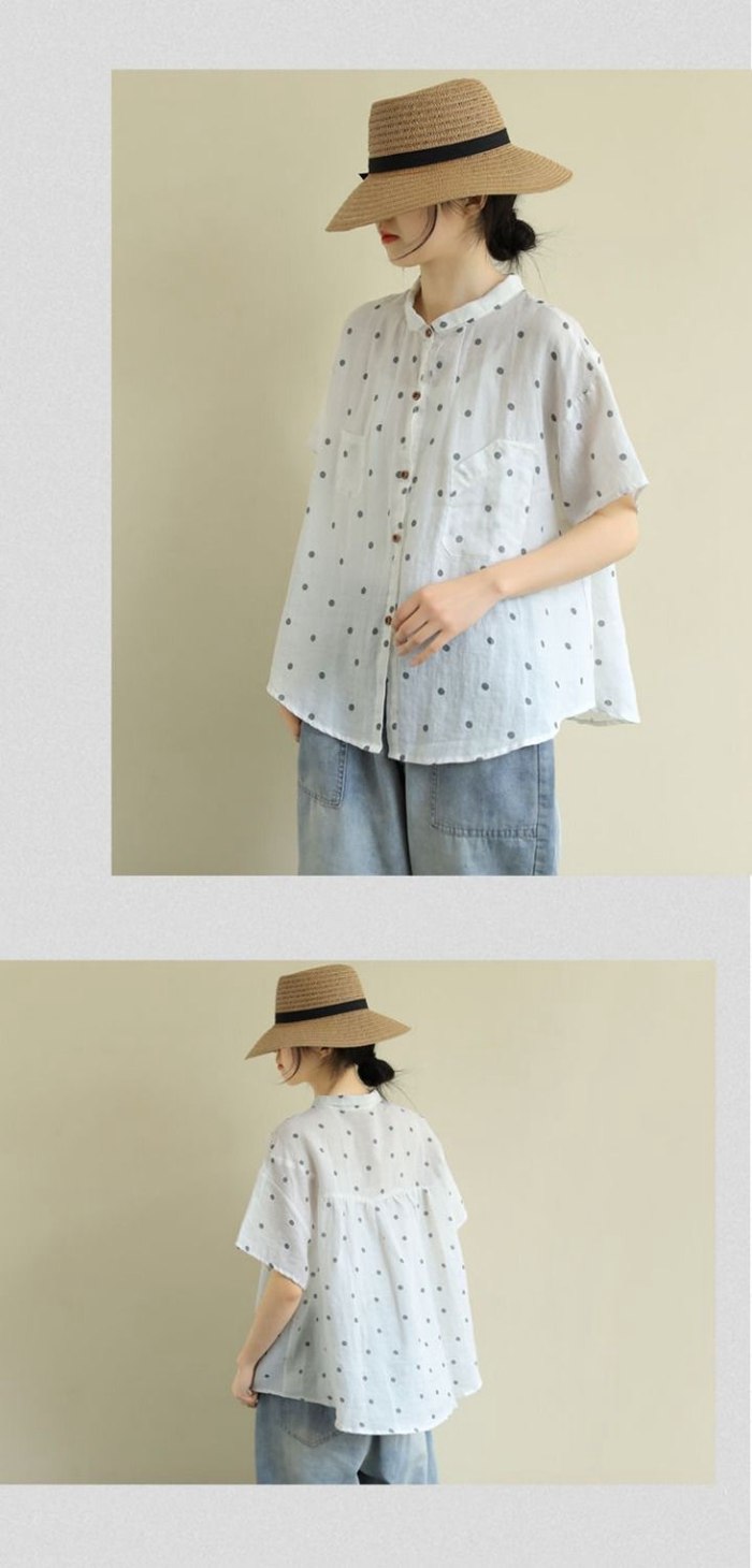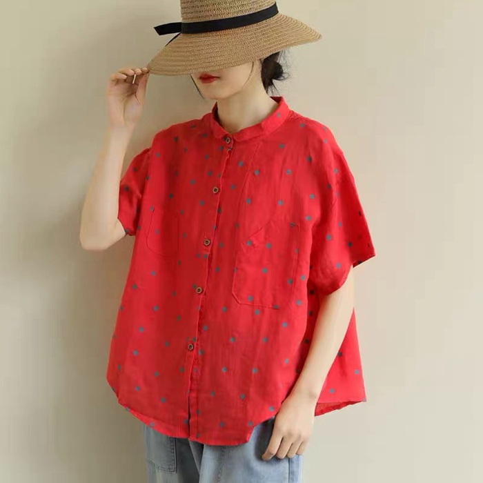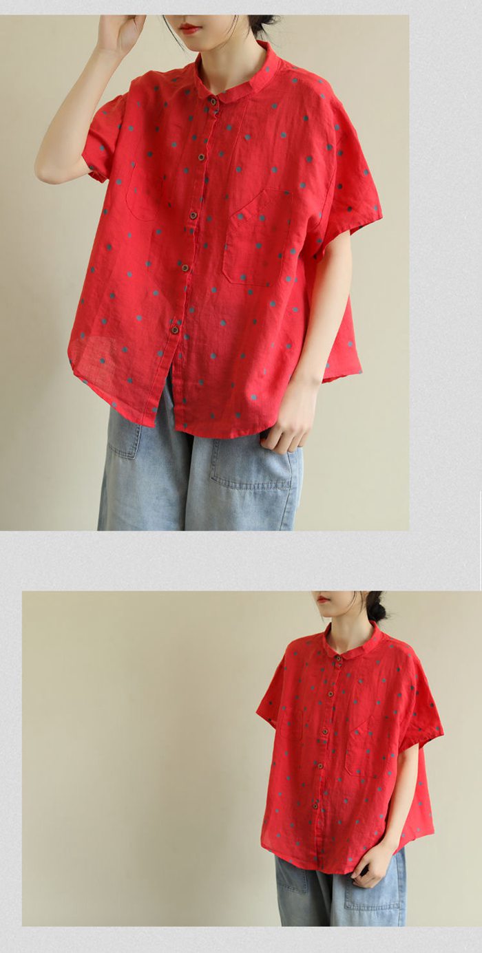 綿麻風 シャツ ブラウス 半袖 シャツ