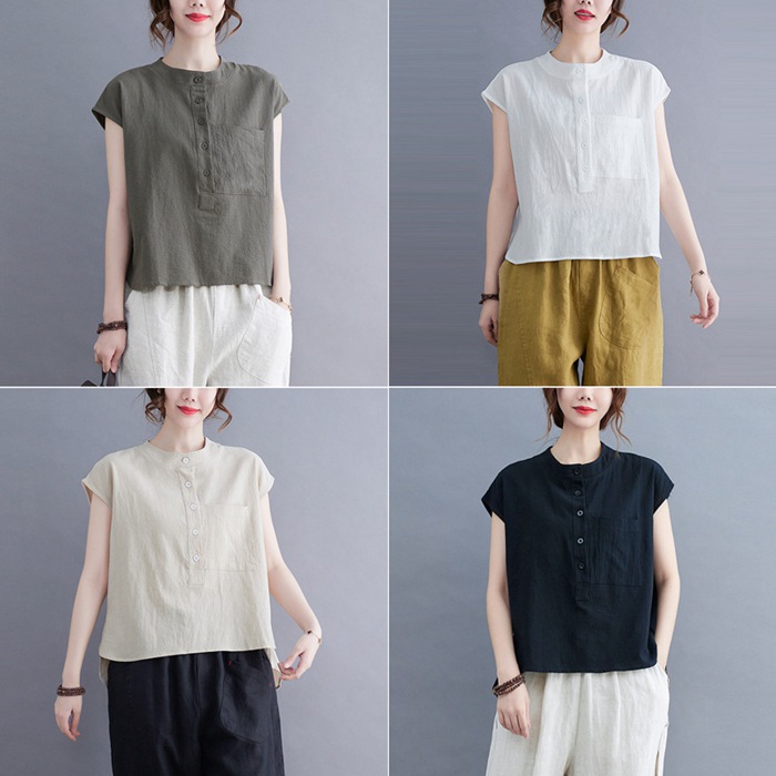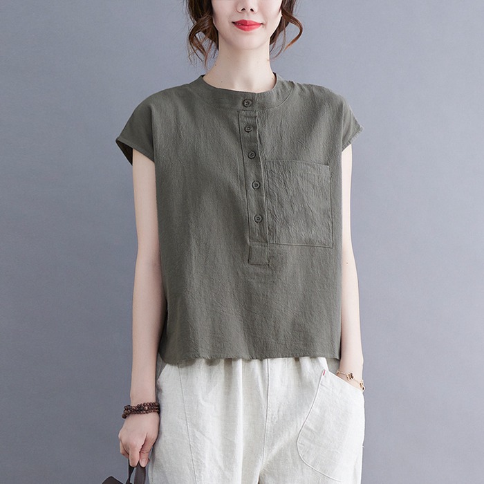 綿麻風 ブラウス レディース 夏 半袖