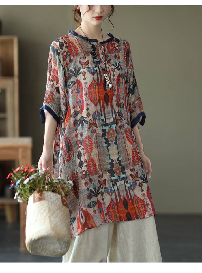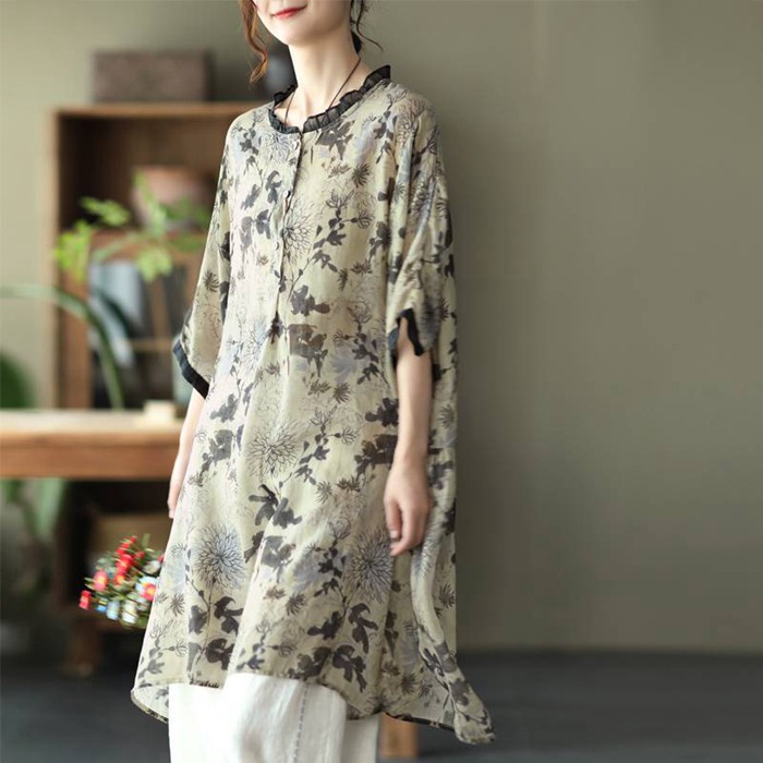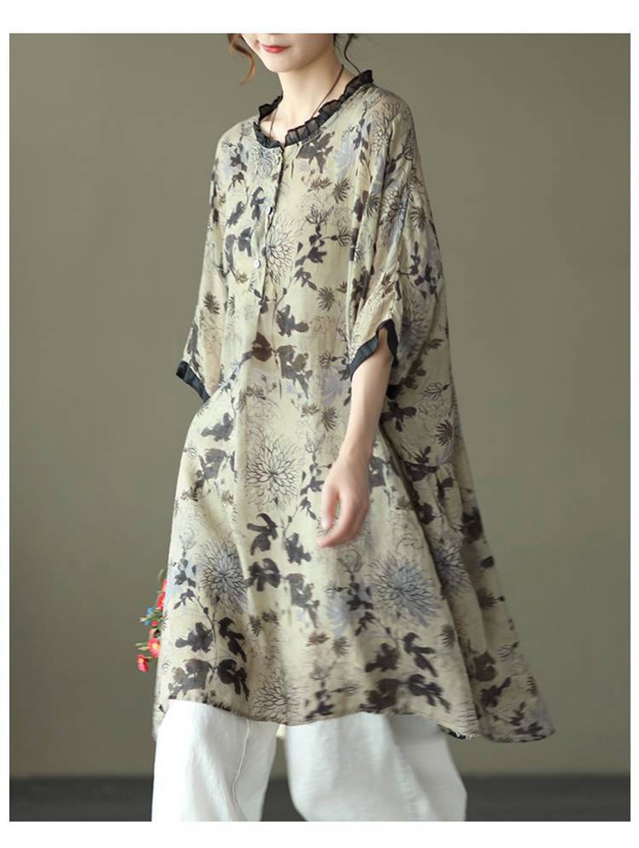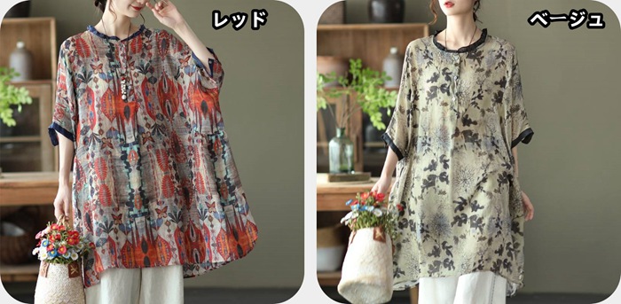 シャツワンピース レディース Uネック