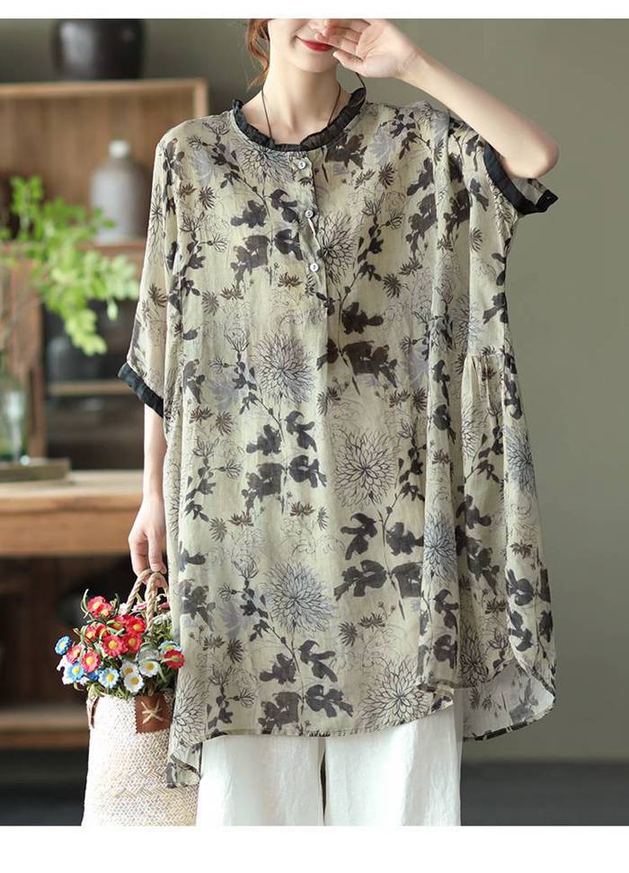 シフォンブラウス シアーブラウス ボリューム袖