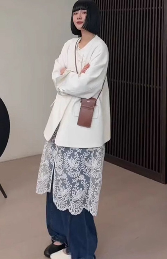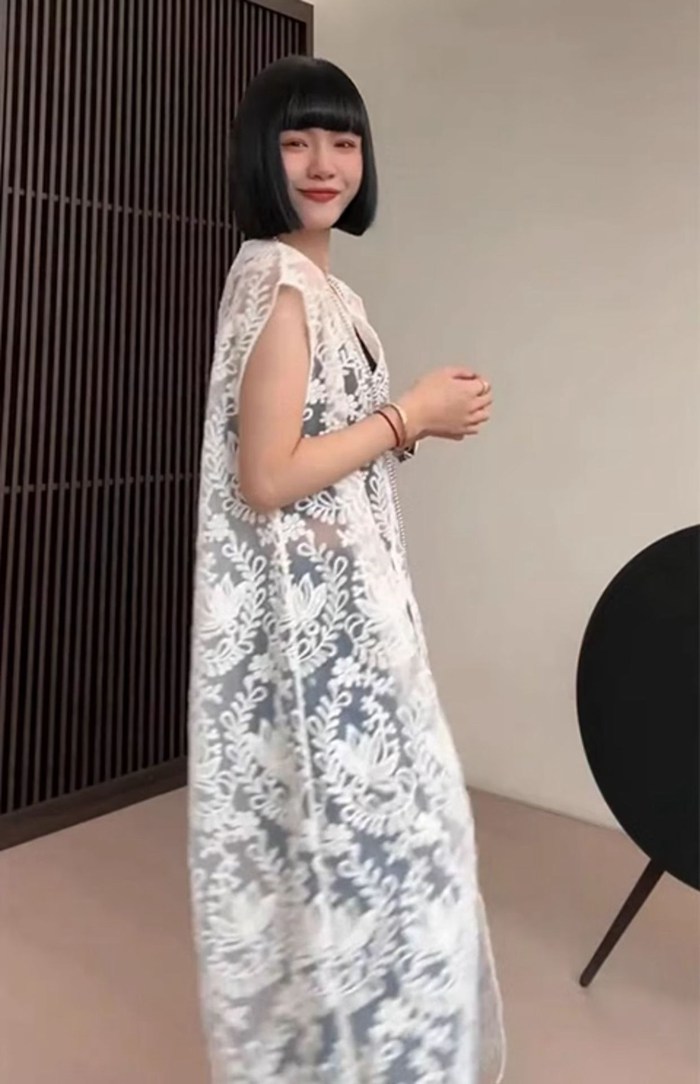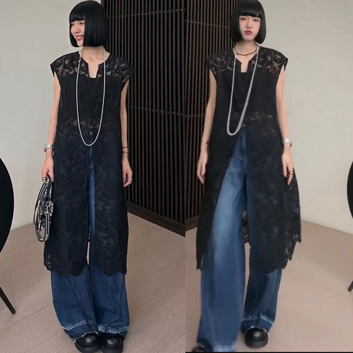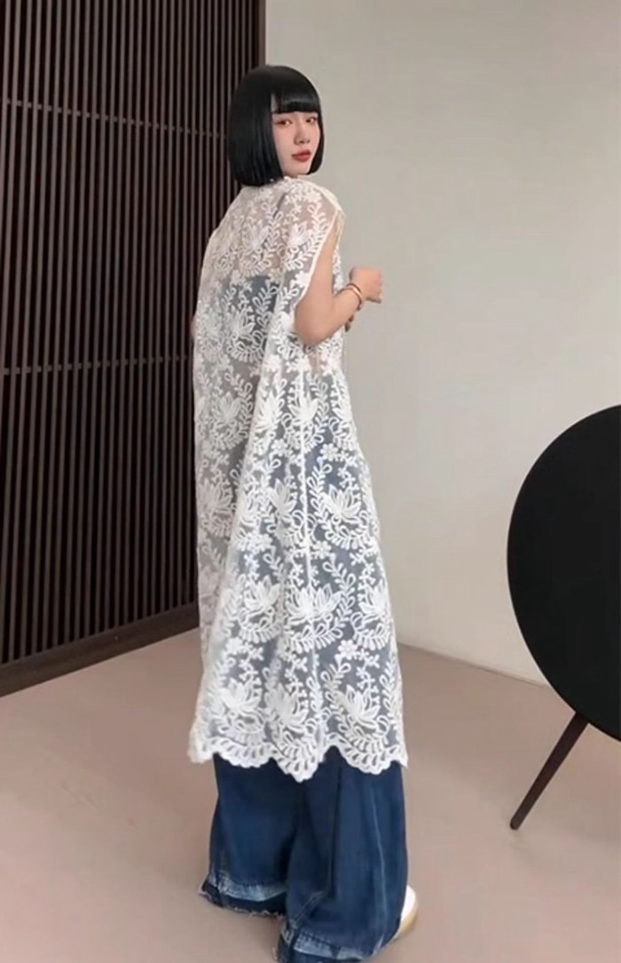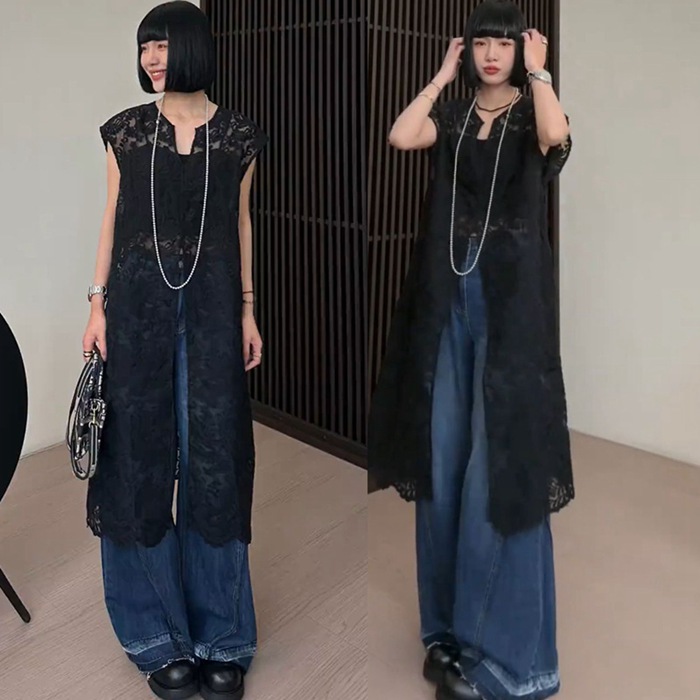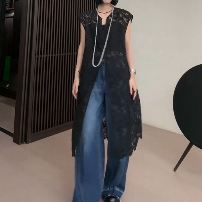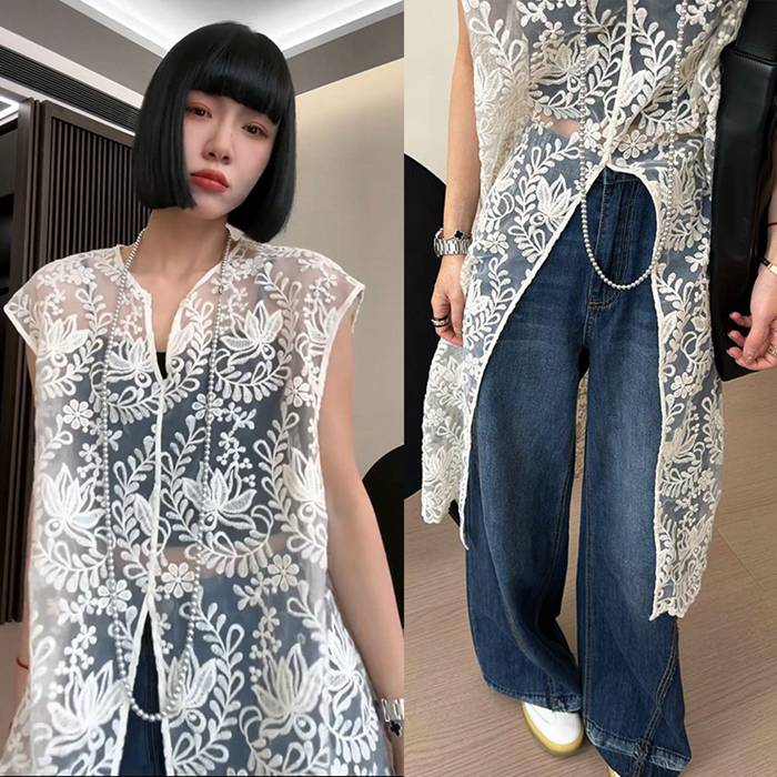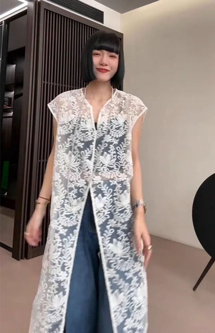 総レースベスト ロング丈 刺繍 上品