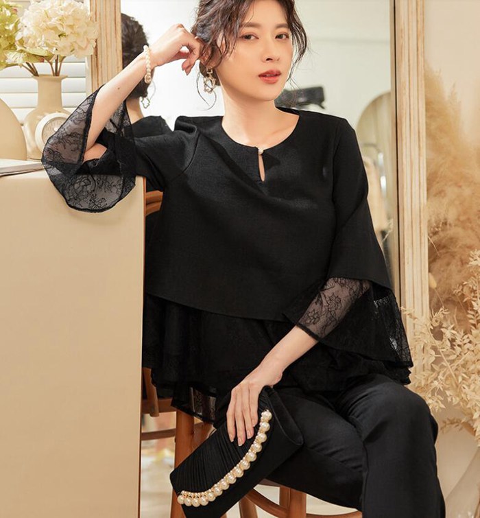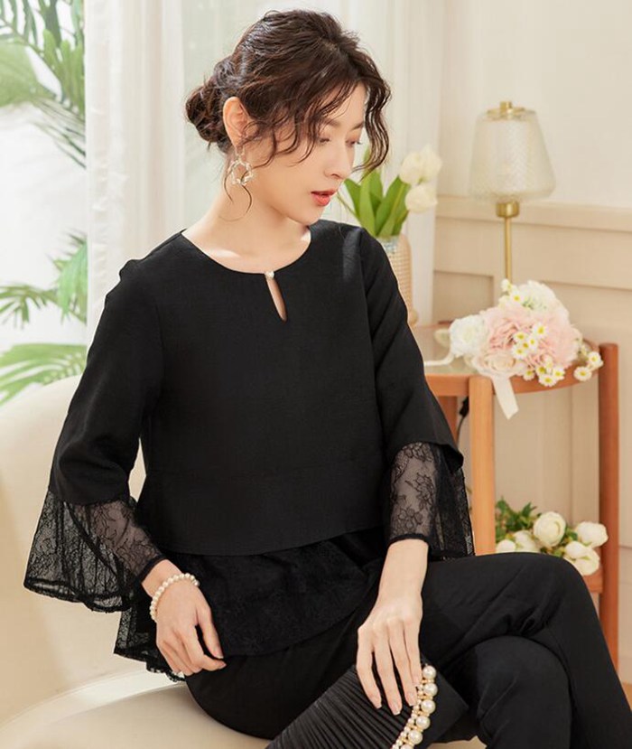 シアースリーブ ドッキングシャツ ボウタイシャツブラウス