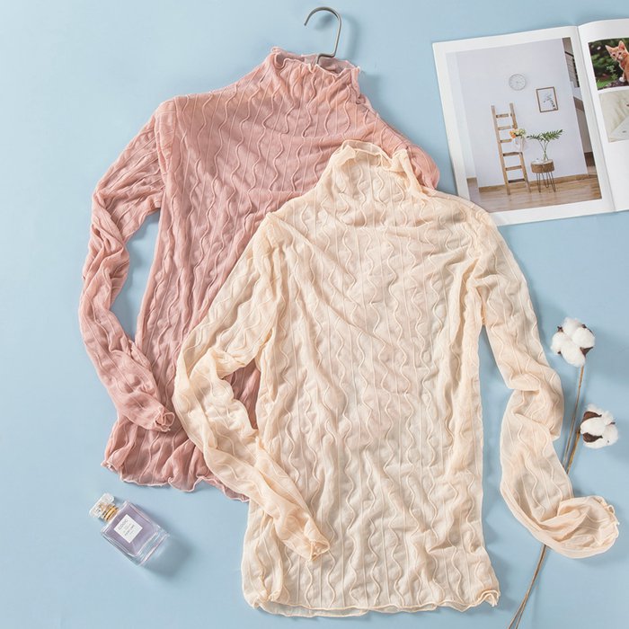 シースルーブラウス 長袖 総レース 立