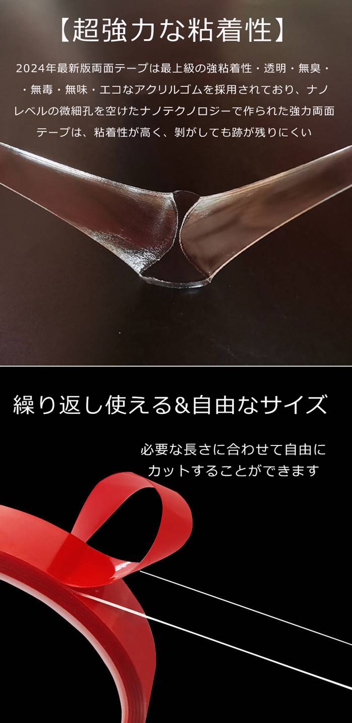 両面テープ 超強力 3m 透明 8mm