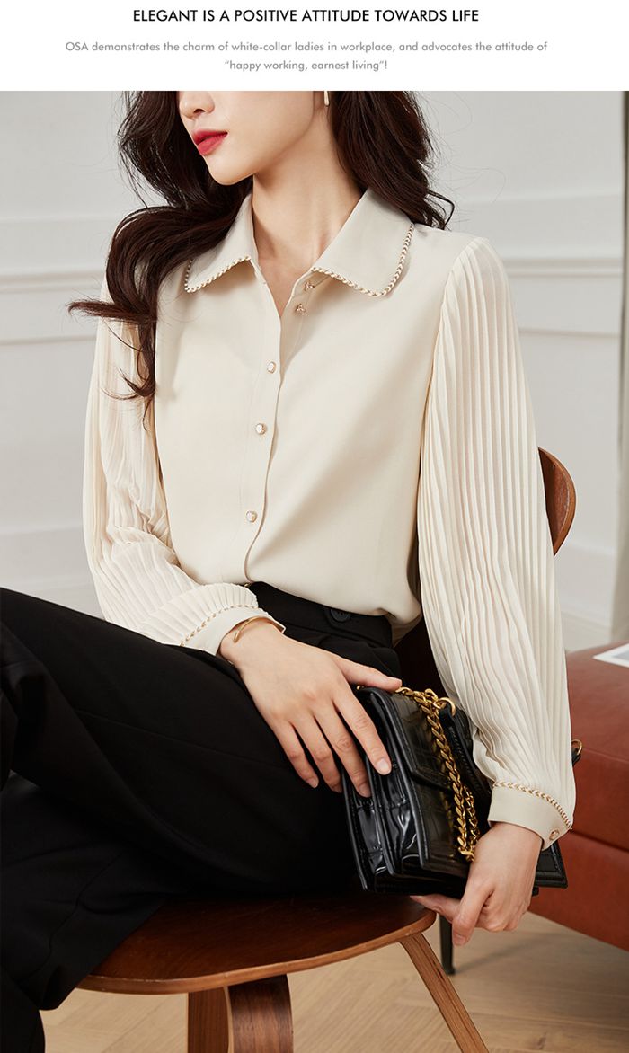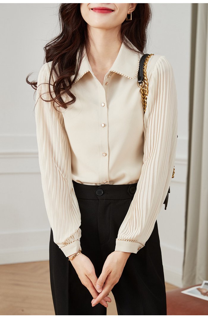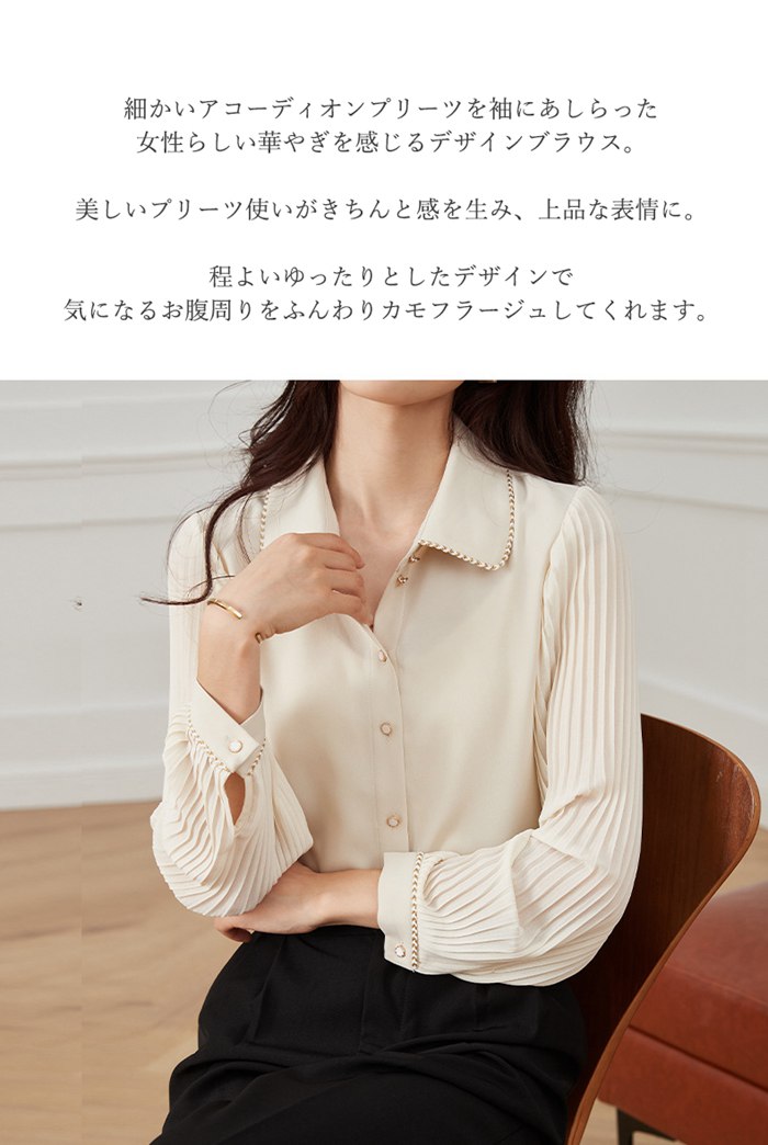 プリーツ袖ブラウス レディース シフォ