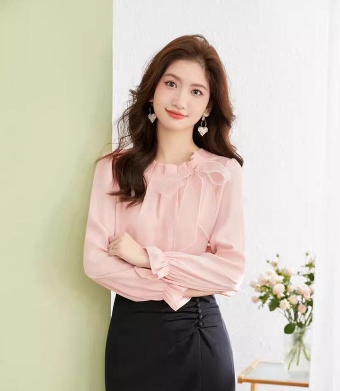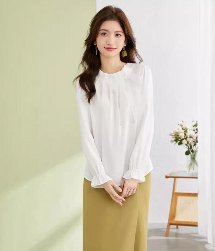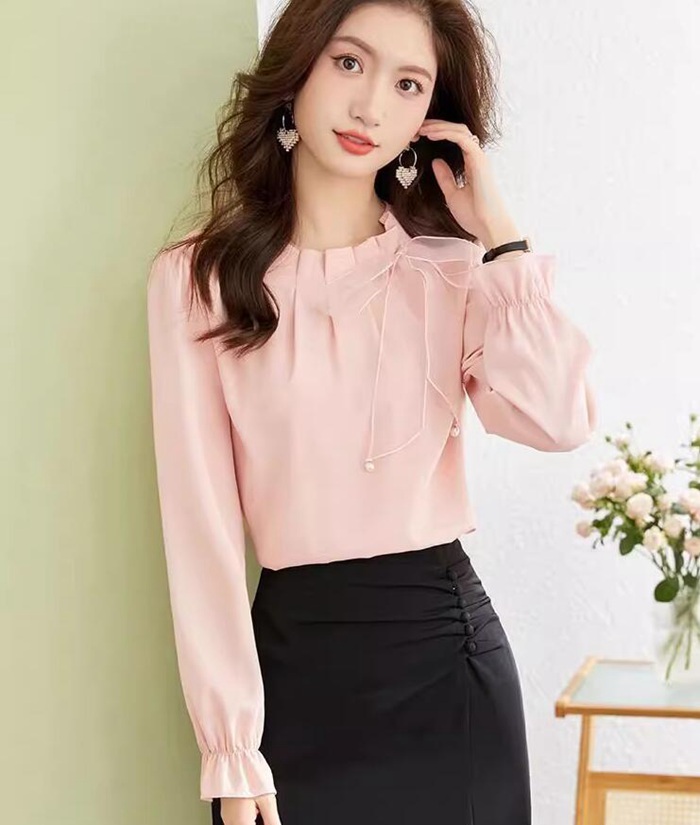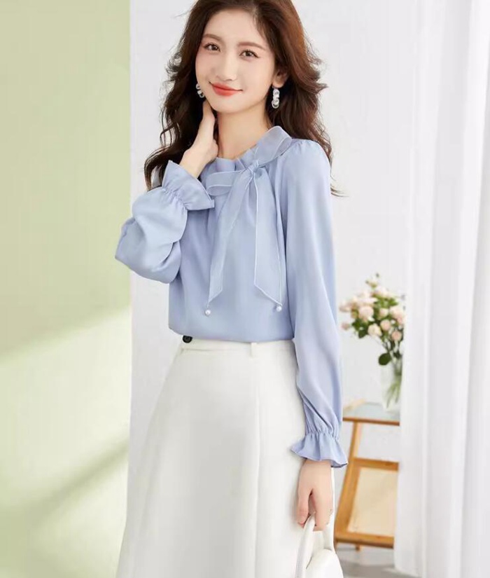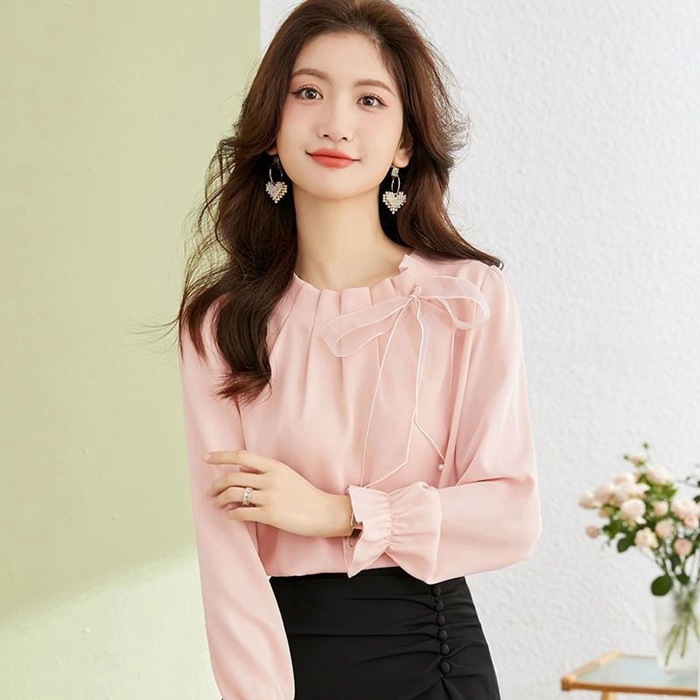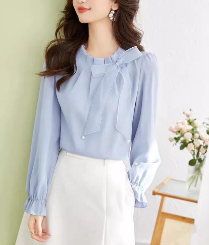 シアースリーブ ドッキングシャツ ボウタイシャツブラウス