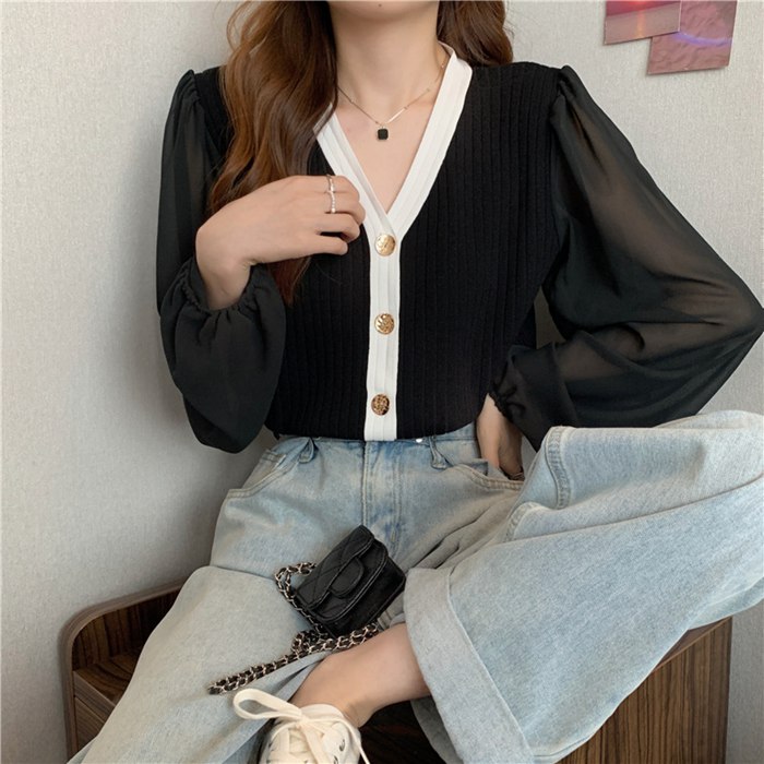 シアースリーブ ドッキングシャツ ボウタイシャツブラウス