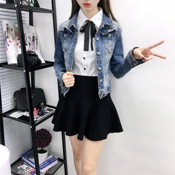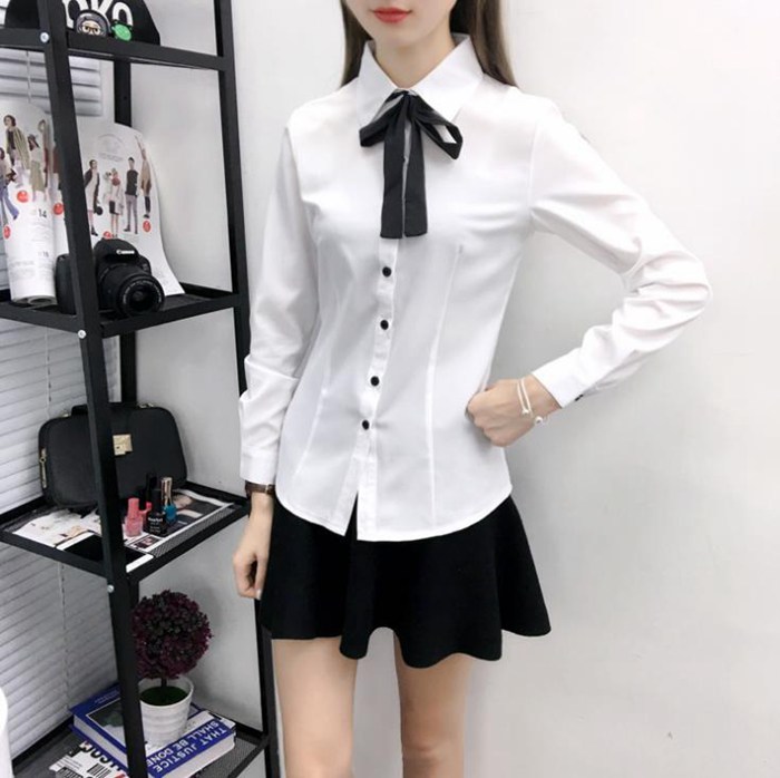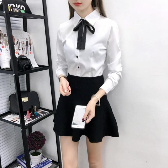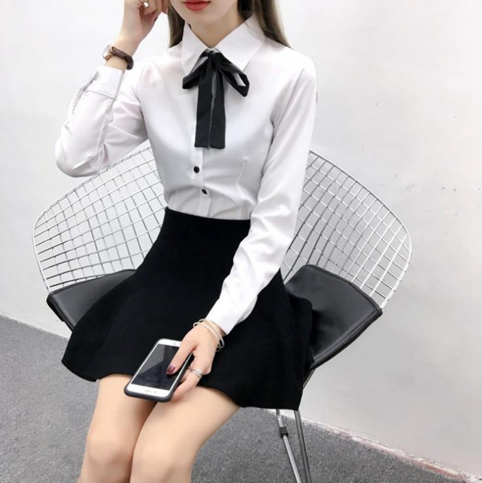 シアースリーブ ドッキングシャツ ボウタイシャツブラウス