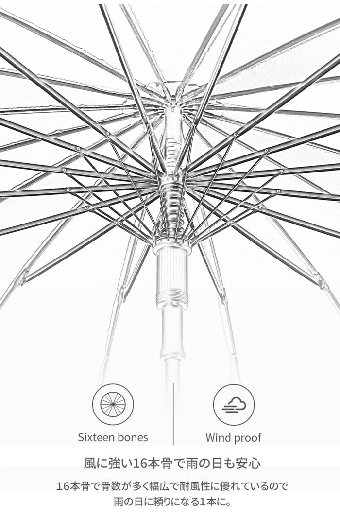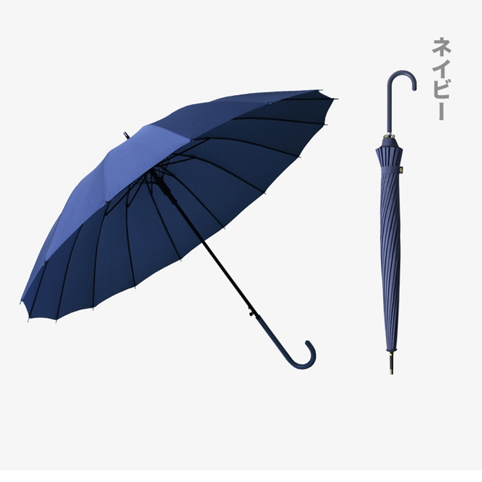 長雨傘 16本骨 ソリッド 長傘 撥水