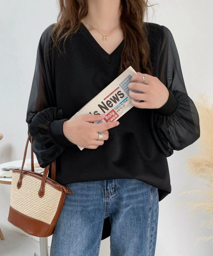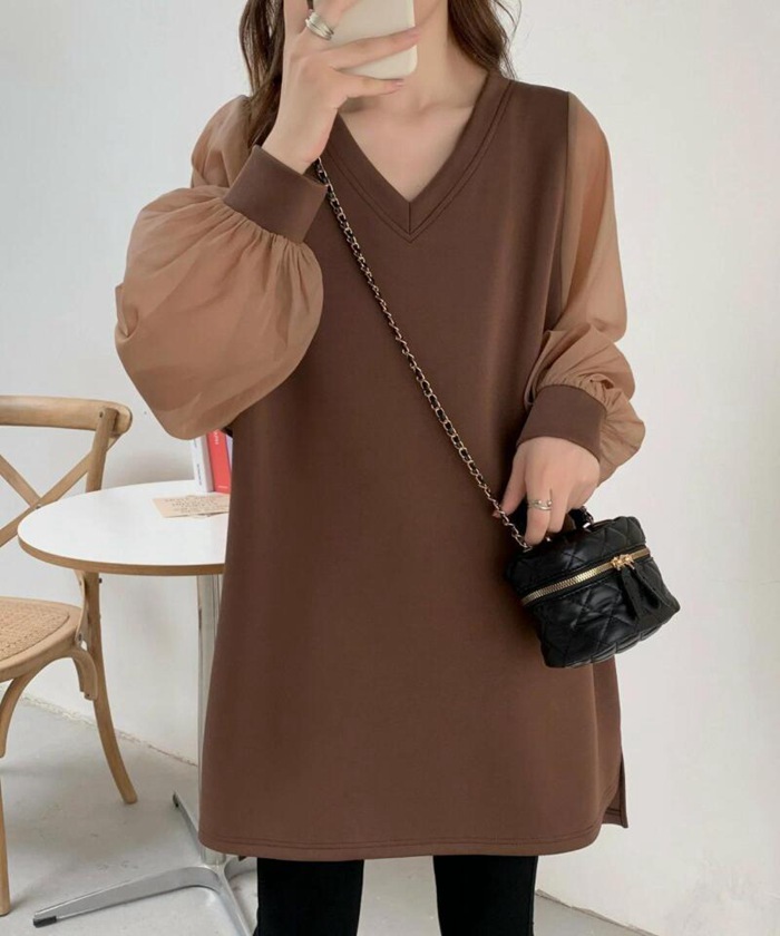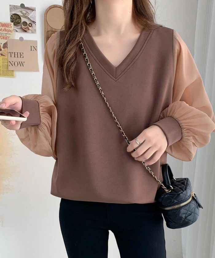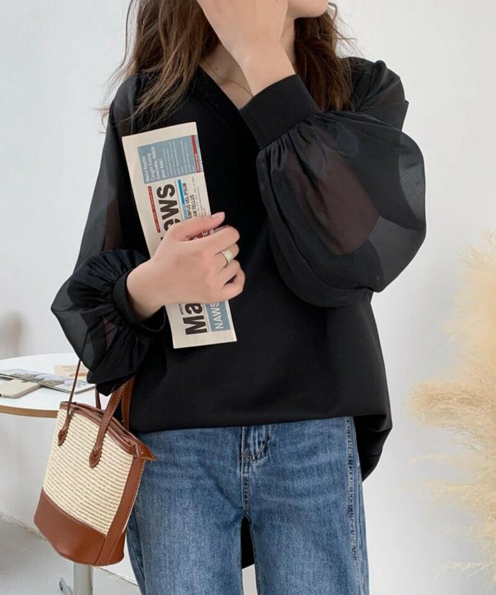 シアースリーブ ドッキングシャツ ボウタイシャツブラウス