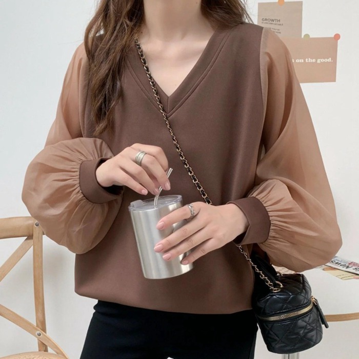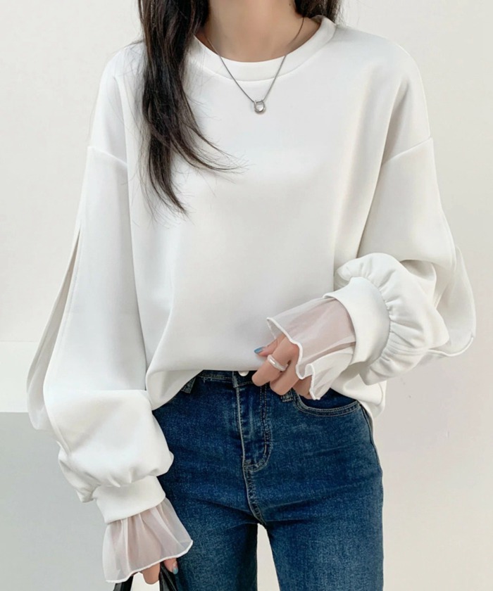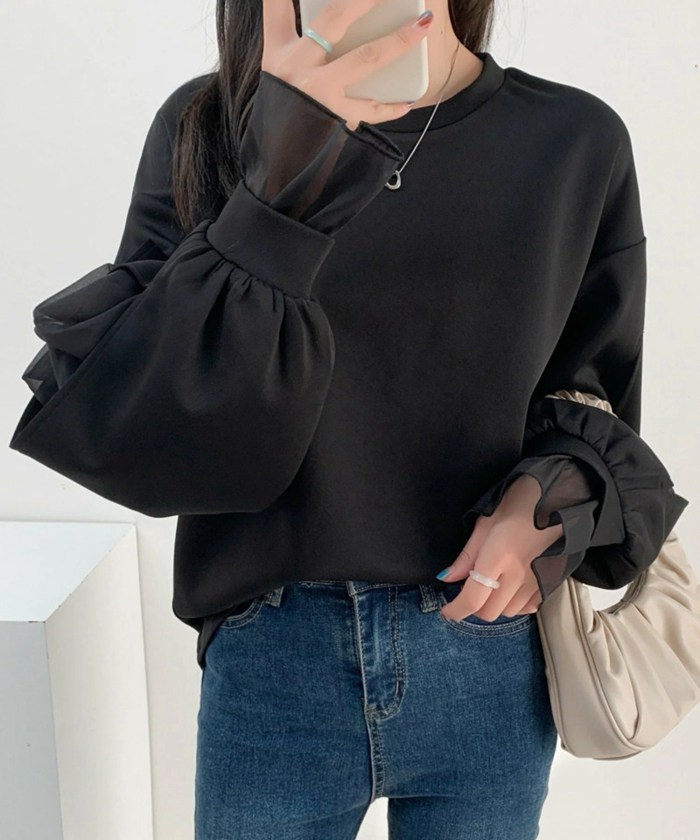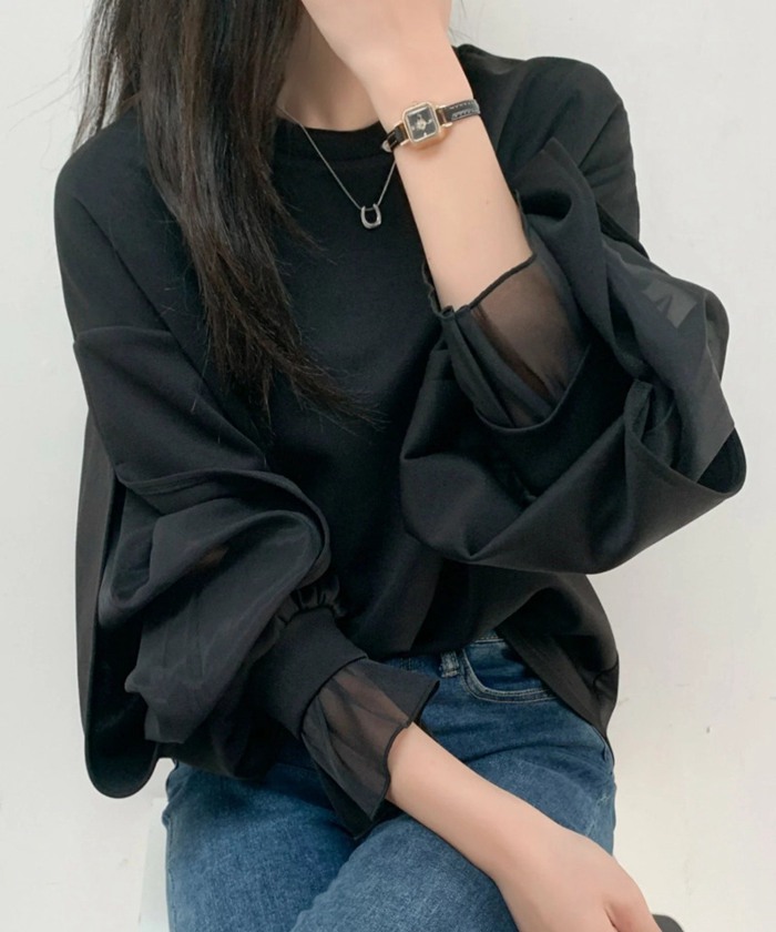 シフォンブラウス シアーブラウス ボリューム袖