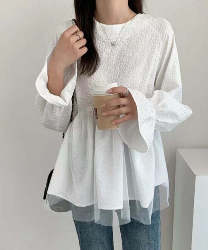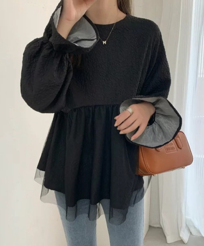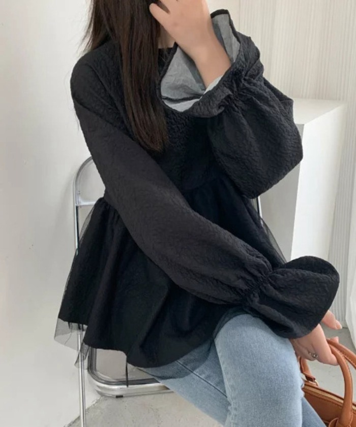 シアースリーブ ドッキングシャツ ボウタイシャツブラウス