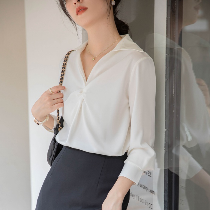 シアースリーブ ドッキングシャツ ボウタイシャツブラウス