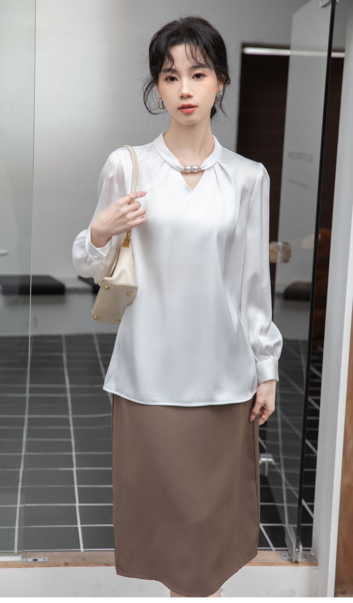 シフォンブラウス シアーブラウス ボリューム袖