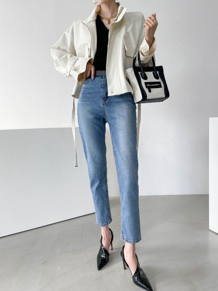 デニムパンツ ビジュー付き
