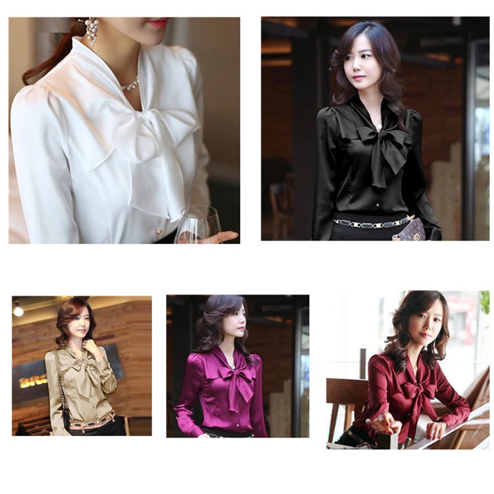 シアースリーブ ドッキングシャツ ボウタイシャツブラウス