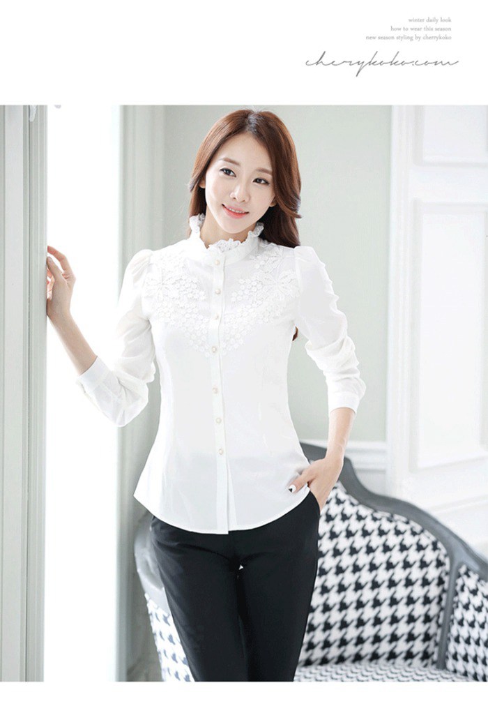 ロングブラウス レディース 長袖 詰襟