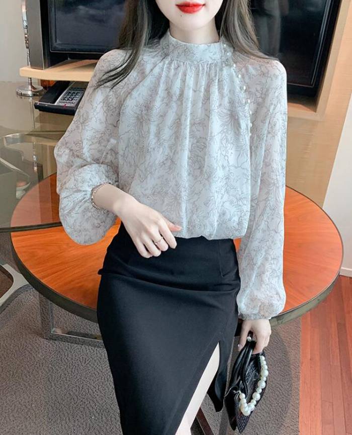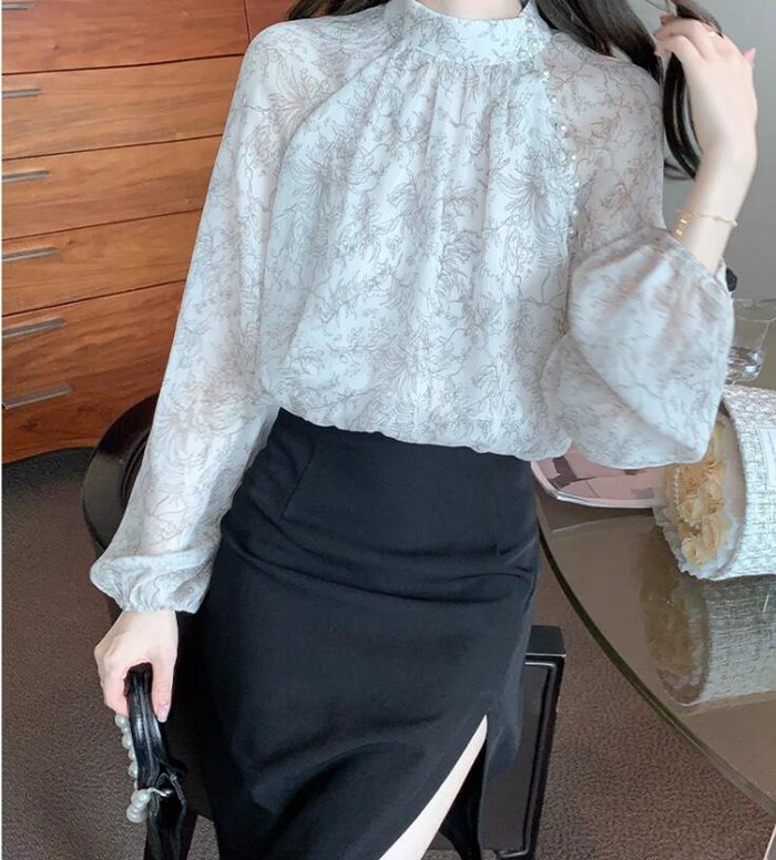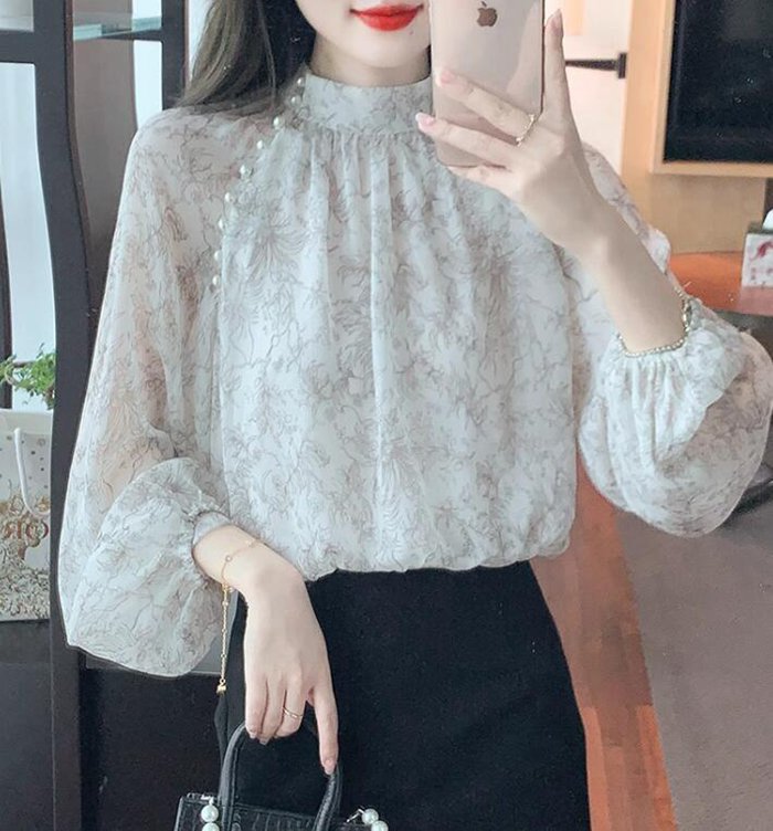 シフォンブラウス シアーブラウス ボリューム袖