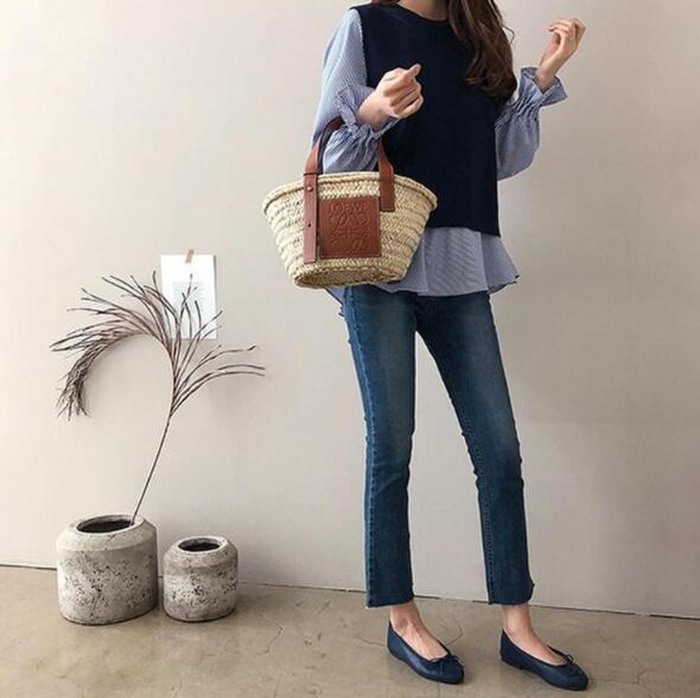 デニムパンツ ビジュー付き