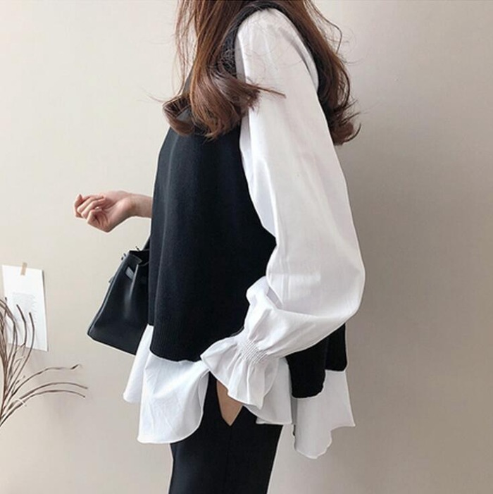シアースリーブ ドッキングシャツ ボウタイシャツブラウス