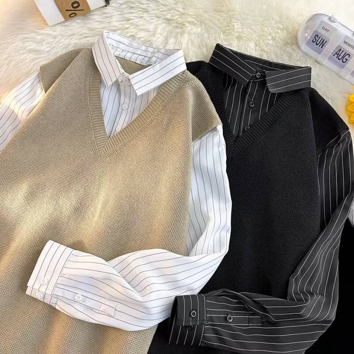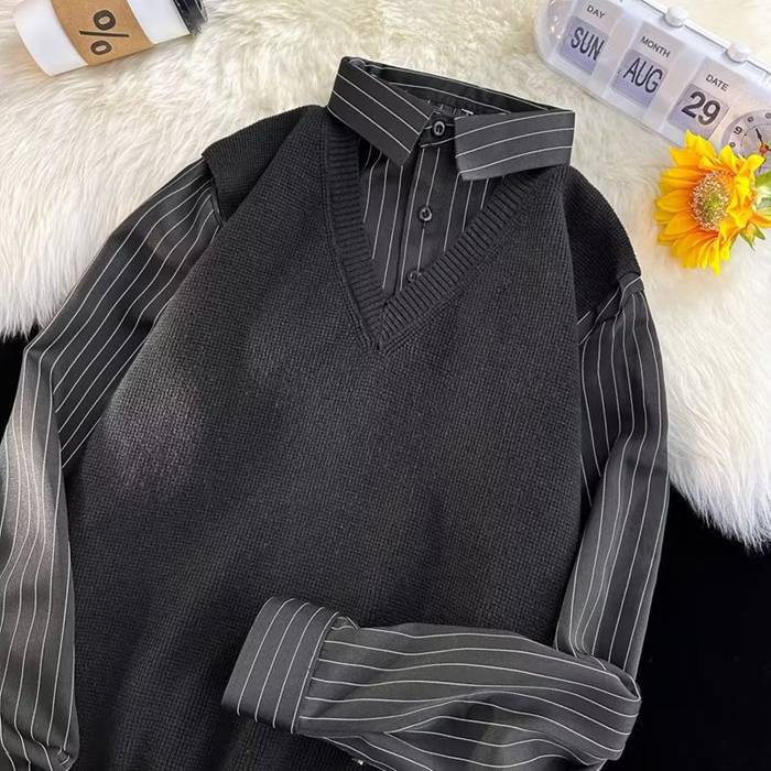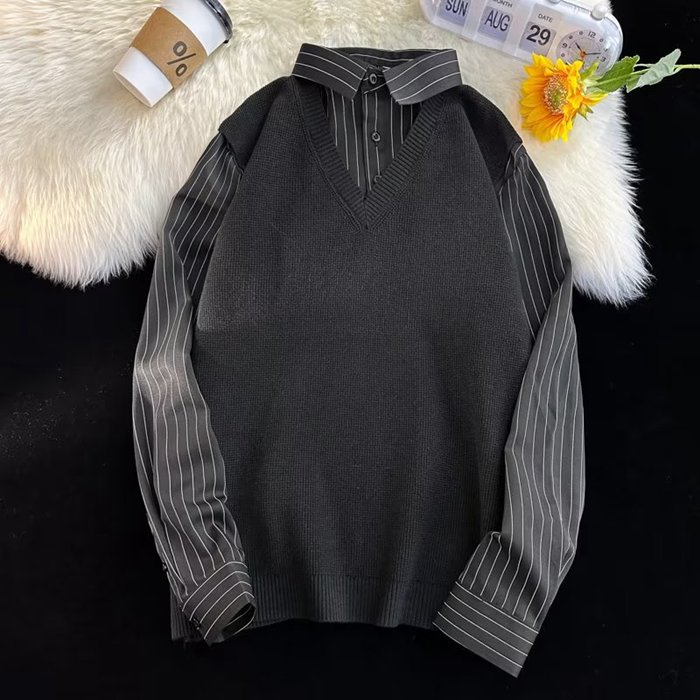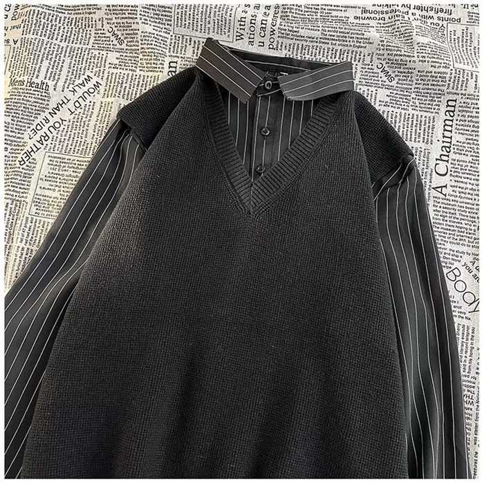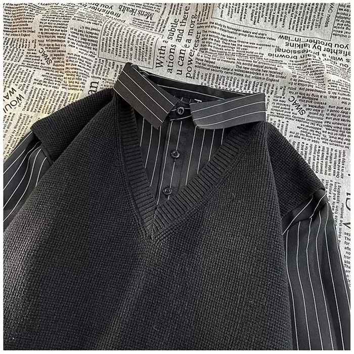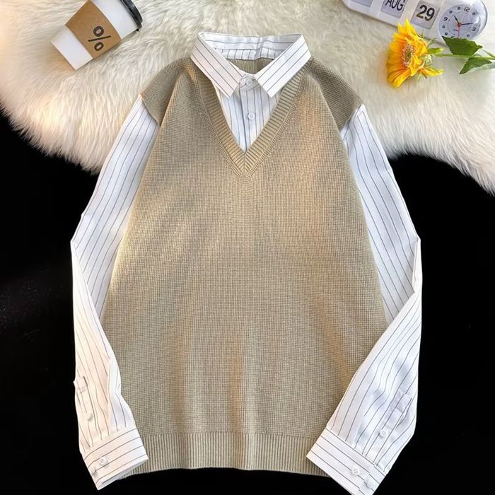 ニットベスト シャツ 重ね着風 Vネッ
