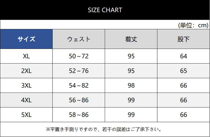サイズ: XL(日本M相当) 2XL(日本L相当) 3XL(日本XL相当) 4XL(日本2XL相当) 5XL(日本3XL相当)