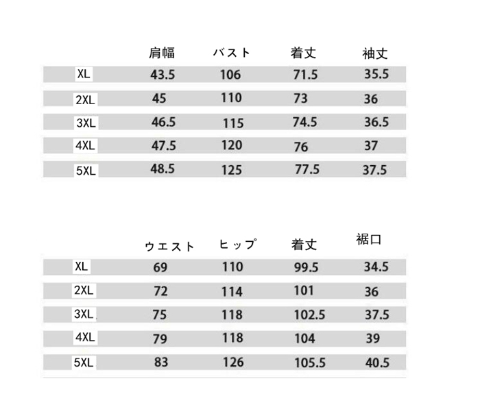 Key1: XL(日本M相当) 2XL(日本L相当) 3XL(日本XL相当) 4XL(日本2XL相当) 5XL (日本3XL相当)