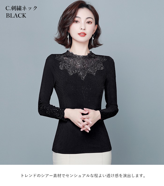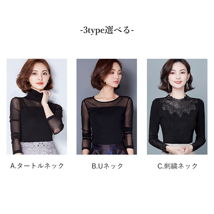 カラー: Uネックブラック タートルネックブラック 刺繍ネックブラック