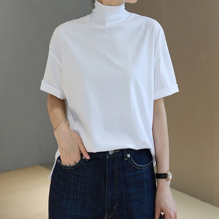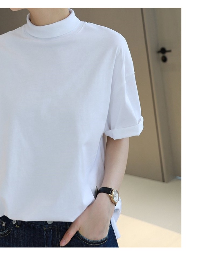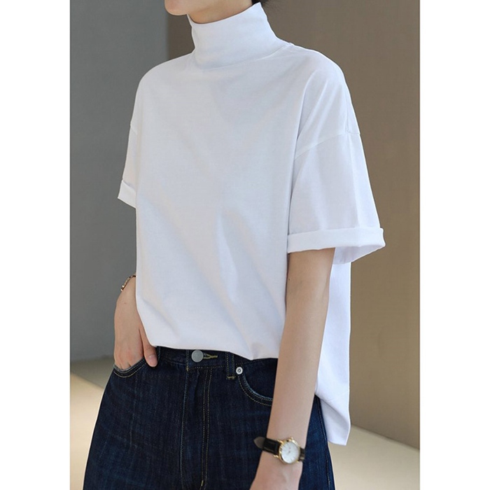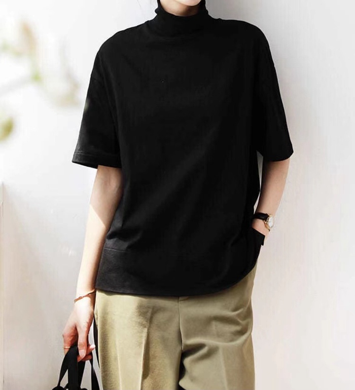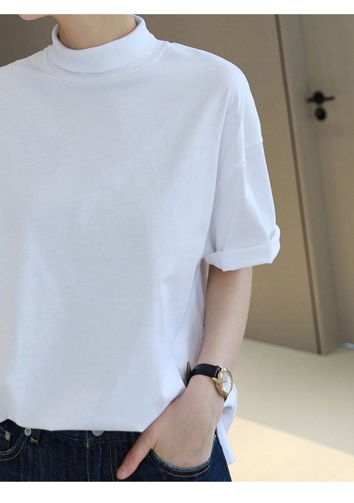 tシャツ 半袖 モックネック コットン