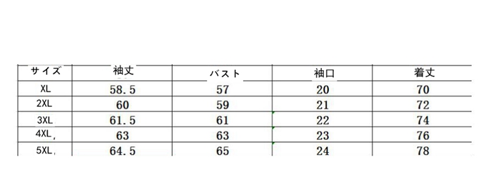 サイズ: XL(日本M相当) 2XL(日本L相当) 3XL(日本XL相当) 4XL(日本2XL相当) 5XL(日本3XL相当)