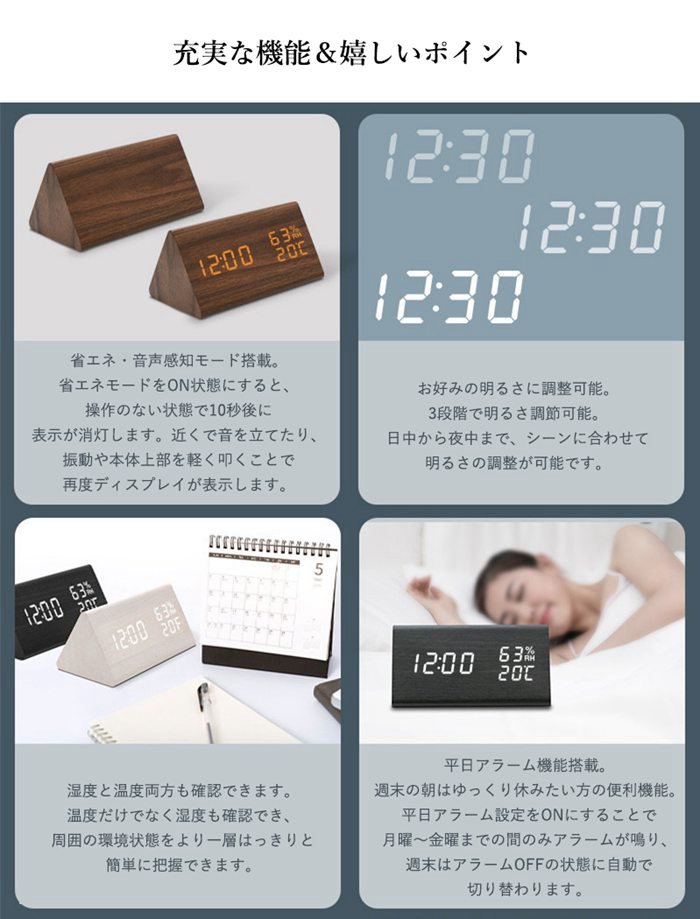 デジタル時計 木目調 置き時計 おしゃ