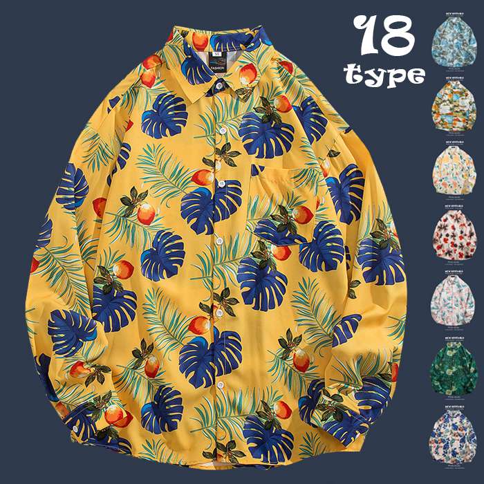シャツ メンズ アロハシャツ 長袖 花柄シャツ カジュアルシャツ 総柄 開襟 スリム 細身 メンズシャツ 長袖シャツ トップス 柄シャツ