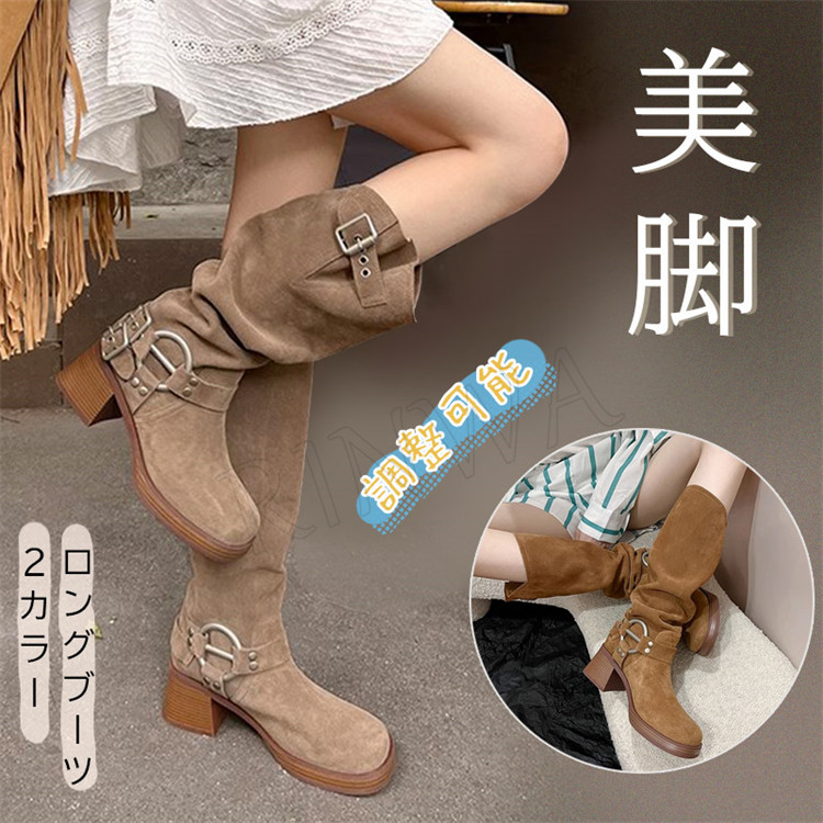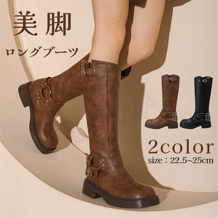 ジョッキーブーツ 美脚 エンジニアブーツ レディース ロングブーツ ニーハイブーツ チャンキーヒール ローヒール ブーツ