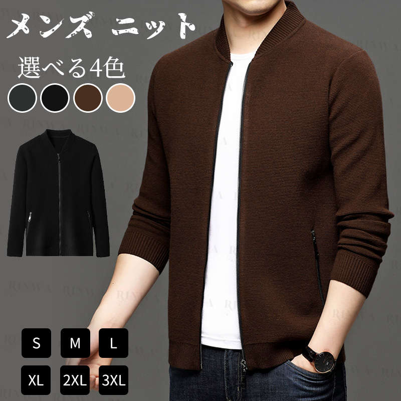 カーディガン メンズ ニットジャケット 立ち襟 ニットパーカー ファスナー トップス コーディガン オフィス 定番 事務服 丸首 前開け セーター 無地 春