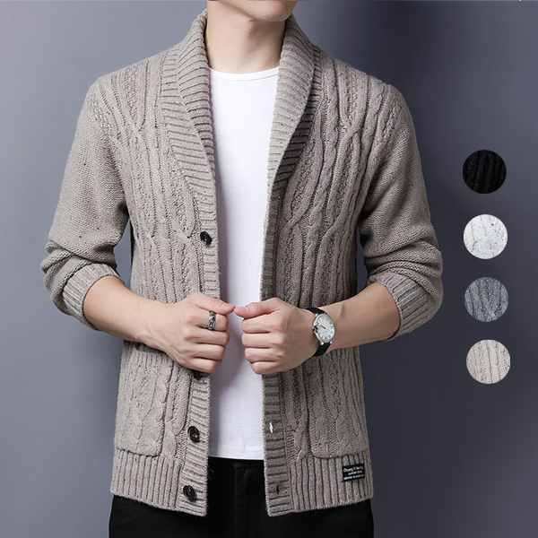 ニット カーディガン メンズ カーディガン へちま襟 秋冬 ケーブルニットメンズファッション トップス カーディガン