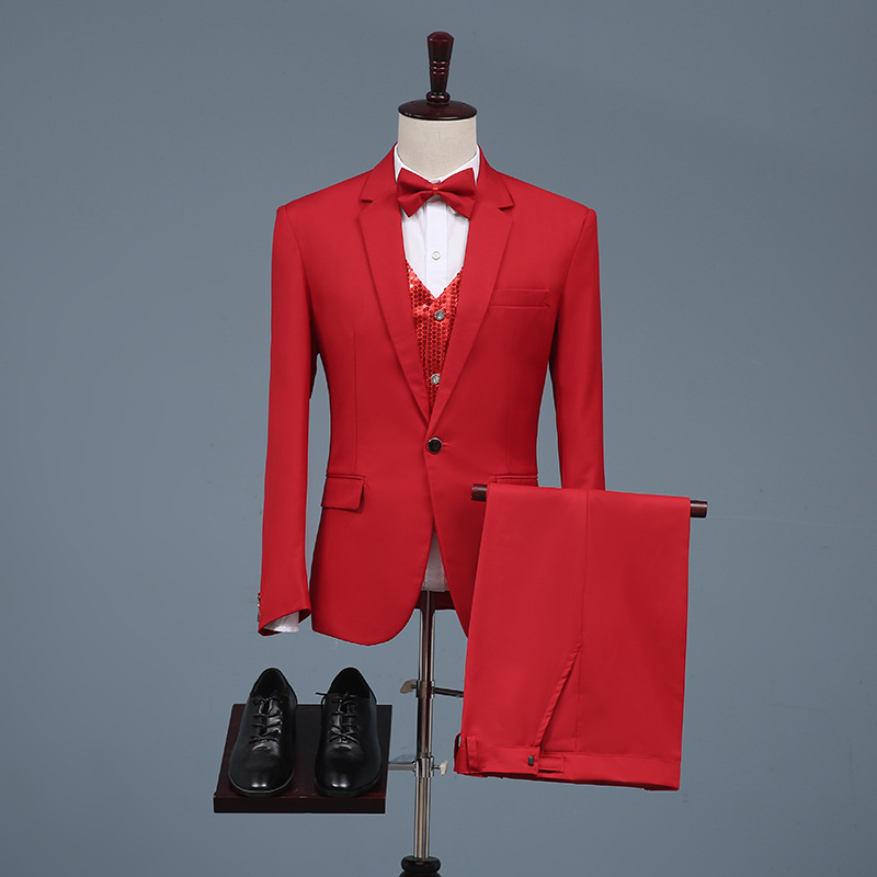レッドメンズスーツスーツセット上下セットタキシードメンズ タキシードフォーマル演出舞台結婚式 パーティ 司会スーツ ズボンの2点セット大きいサイズ有り