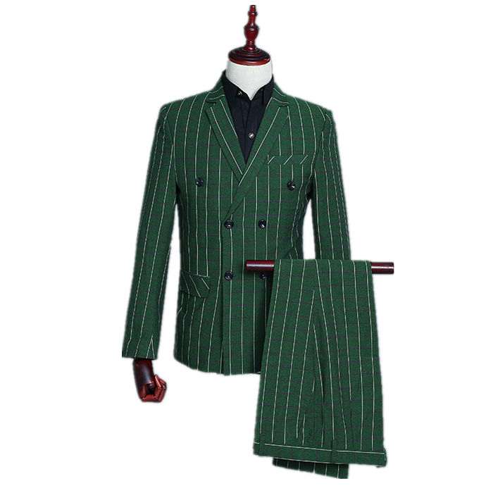 ストライプメンズスーツスーツセット上下セット セットアップグリーン3点セット花柄メンズタキシードメンズ タキシード パンツ演出服 ベスト付き司会