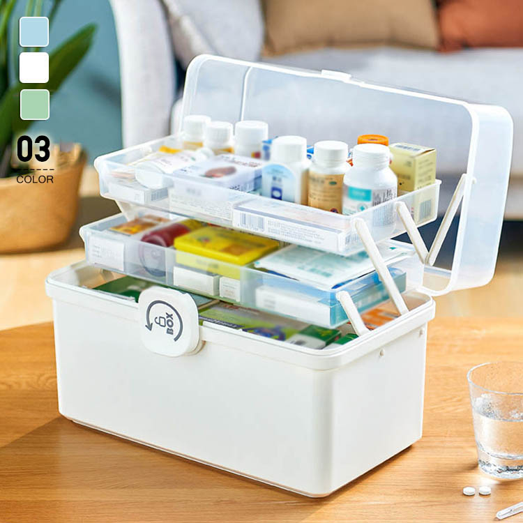 薬箱 救急箱 大容量 3層 収納ケース 収納ボックス 応急ボックス医薬品 コンタクト 介護 救急 救助用品 救急箱 救急セット