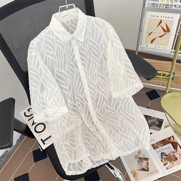 半袖シャツ メンズ カジュアルシャツ 開襟 透け感 韓国風 原宿風 印象派 個性的 かっこいい 春秋服 着痩せ 重ね着 やわらか ファッション